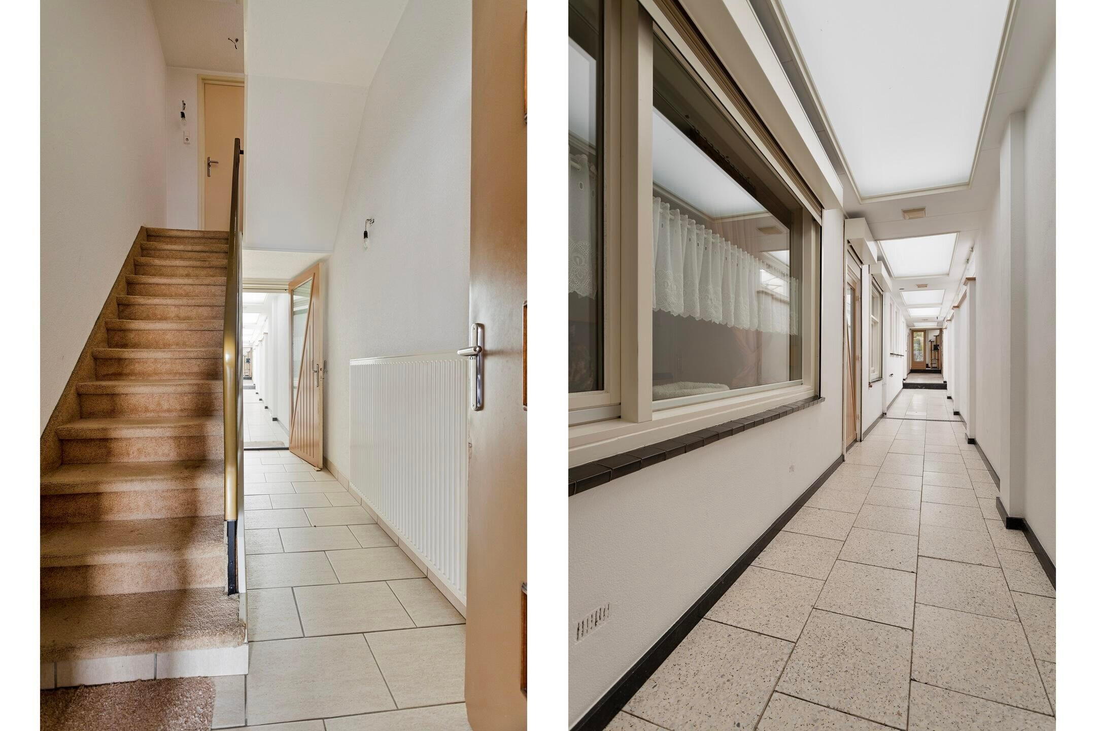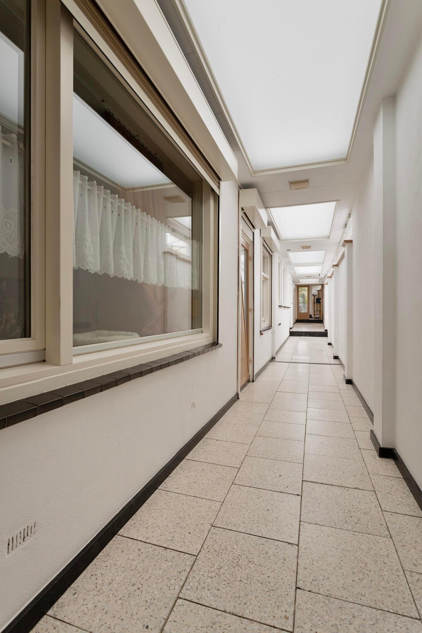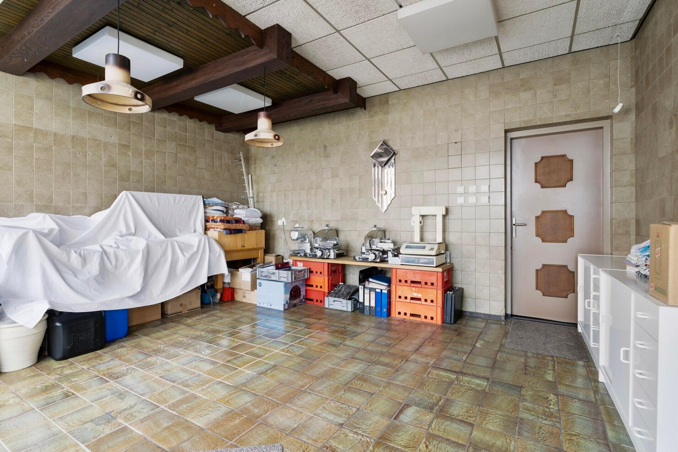 Vanuit de entree/voordeur komt u in de winkelruimte/showroom(5.19 x 4.95 meter) uit. Deze ruimte geeft dan weer toegang tot de hal. Deze hal geeft toegang tot een woonkamer, trappengang en de corridor richting de opslagruimten. De corridor geeft toegang tot de achterom, badkamer, keuken, berging, werkruimte en serre.