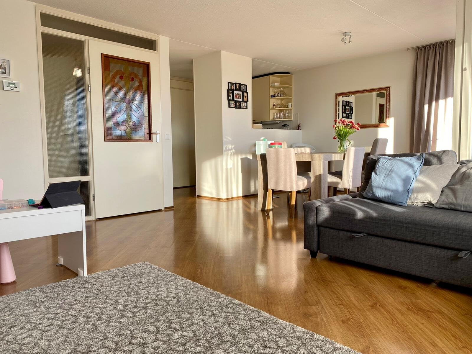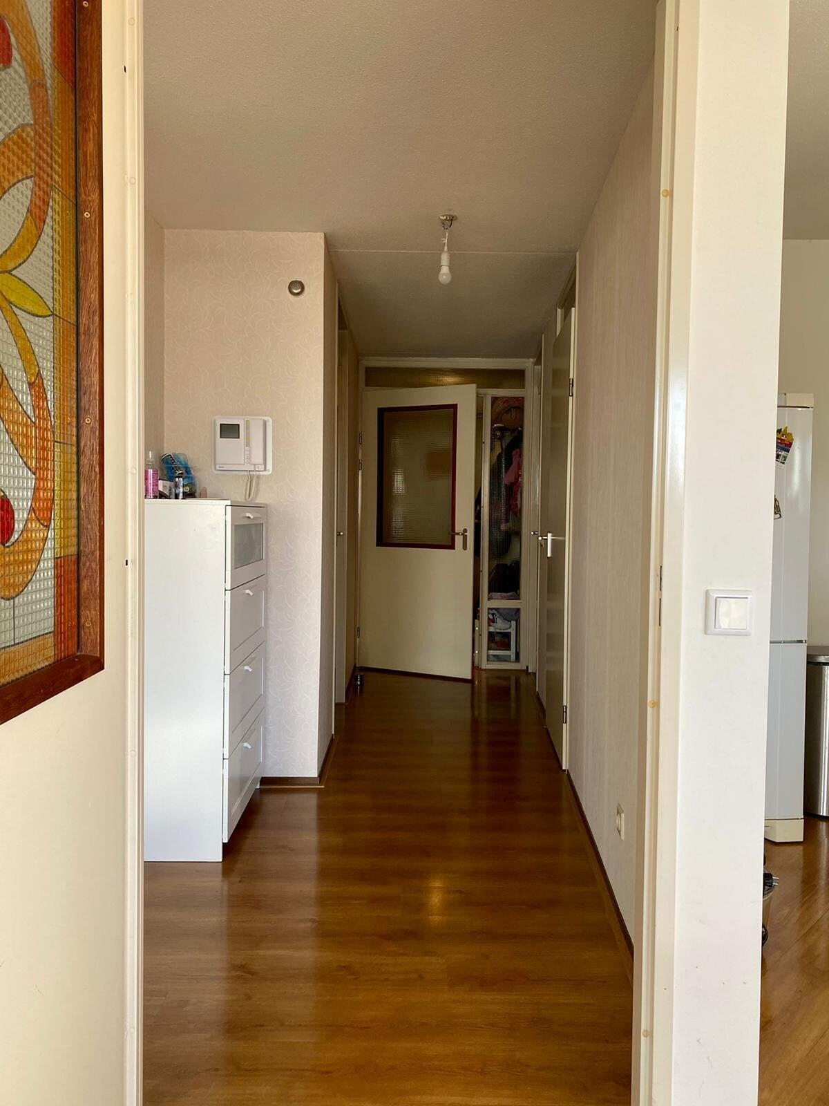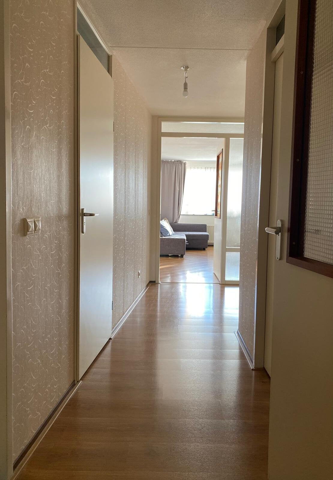 Entree, hal met toilet, ruime en lichte woonkamer met toegang tot zonnig balkon met mooi uitzicht, keuken voorzien van diverse apparatuur, ruimte voor wasmachine/drogeraansluiting, c.v. opstelling,