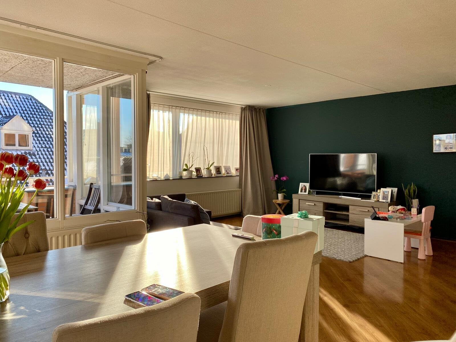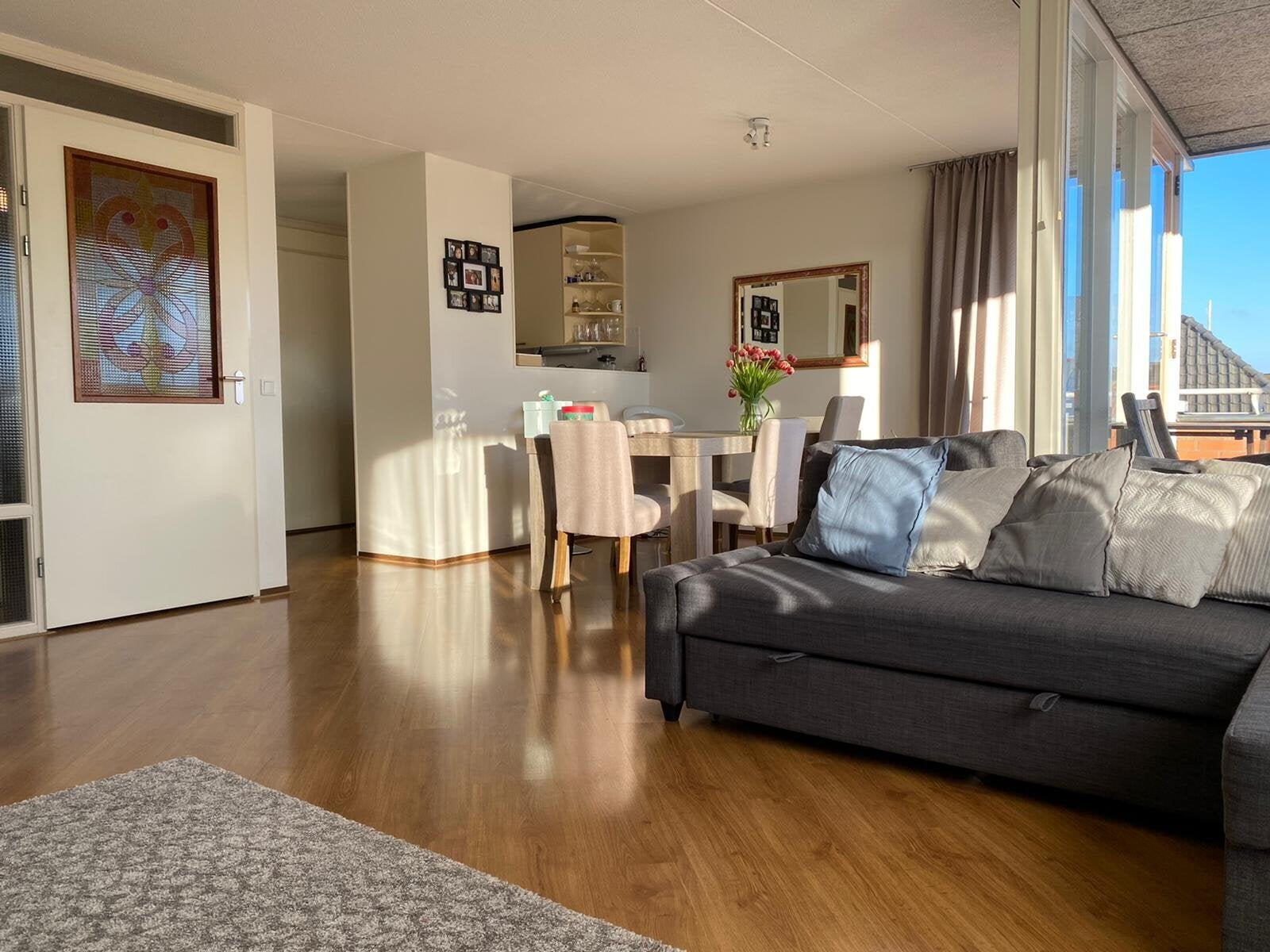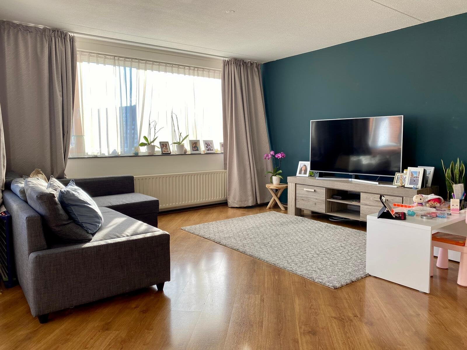 Entree, hal met toilet, ruime en lichte woonkamer met toegang tot zonnig balkon met mooi uitzicht, keuken voorzien van diverse apparatuur, ruimte voor wasmachine/drogeraansluiting, c.v. opstelling,