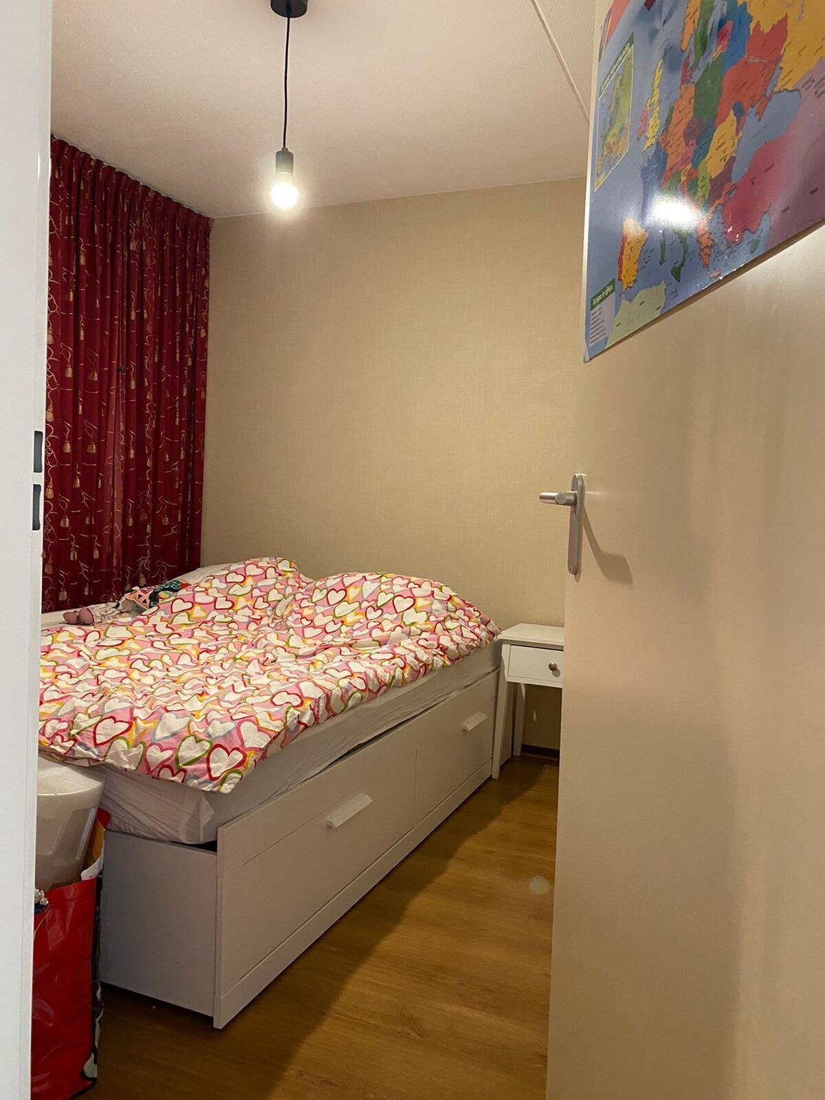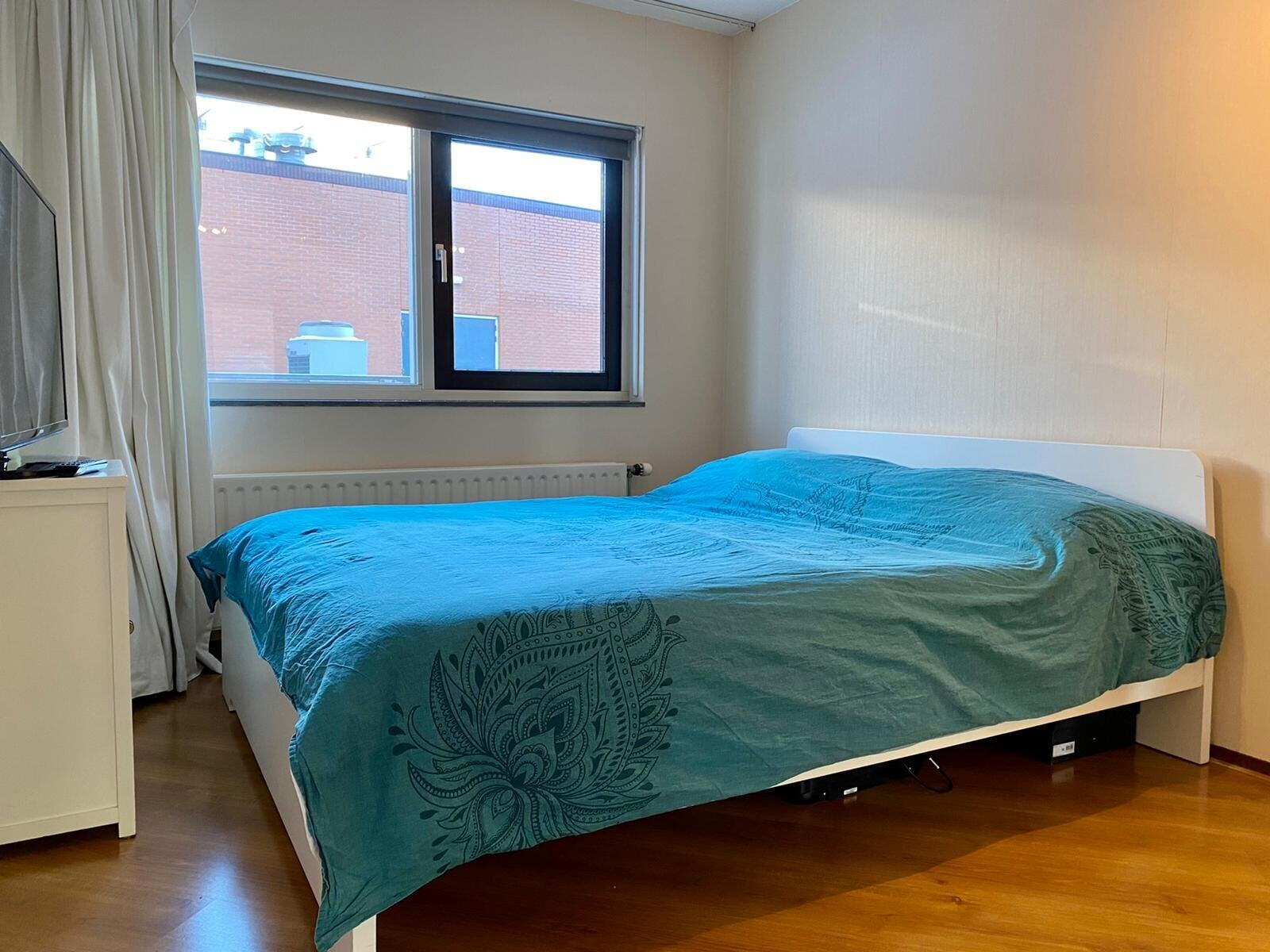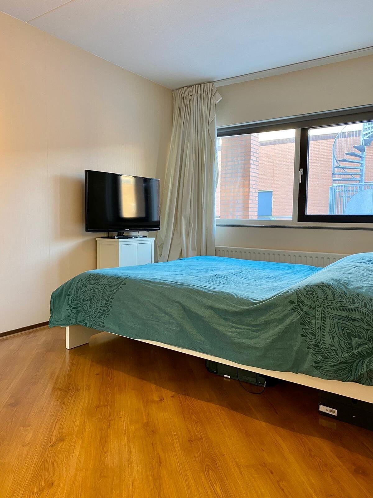 ruime slaapkamer met kastenwand, badkamer voorzien van ligbad en wastafel, 2e slaapkamer. De woonkamer is voorzien van een laminaat vloer.