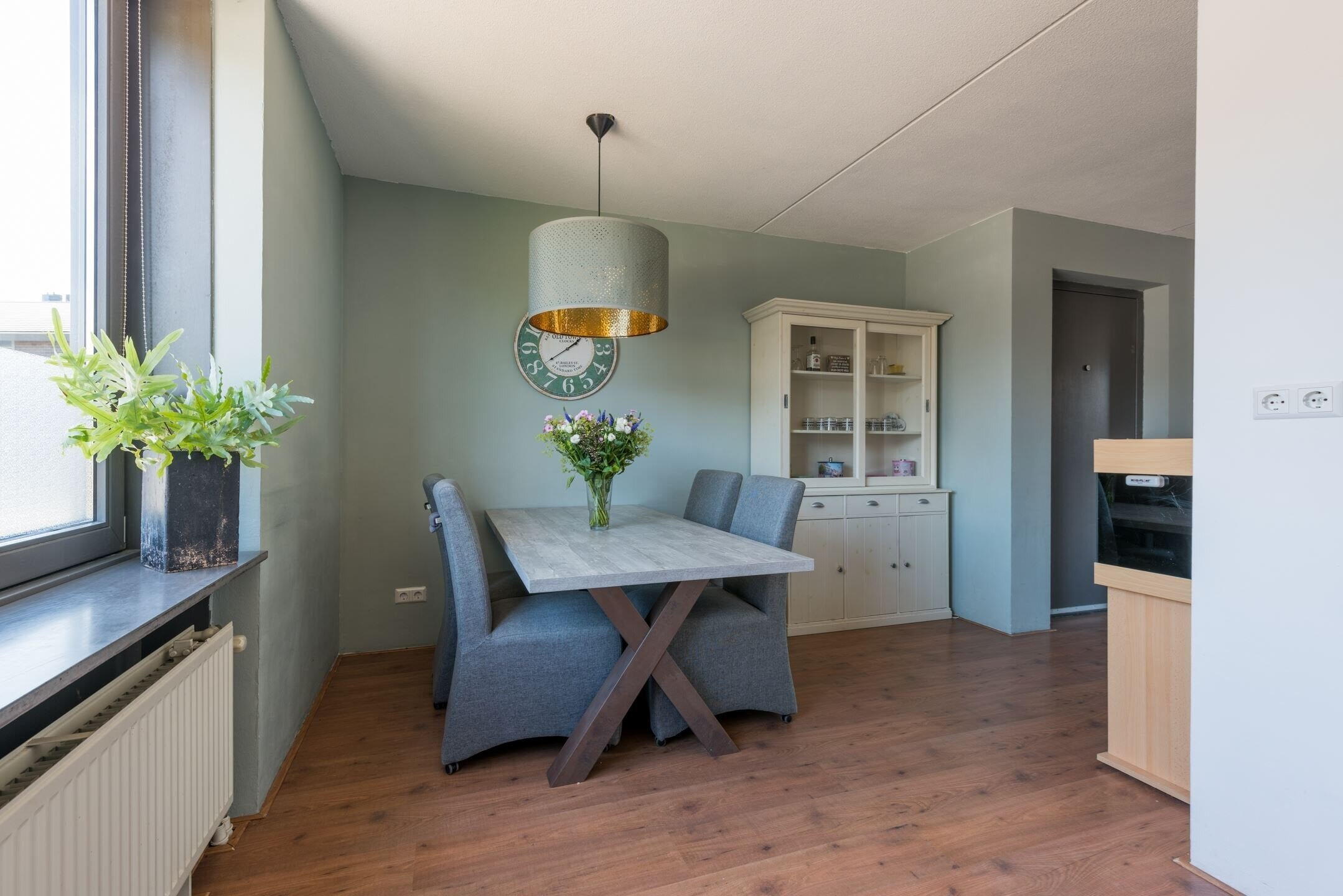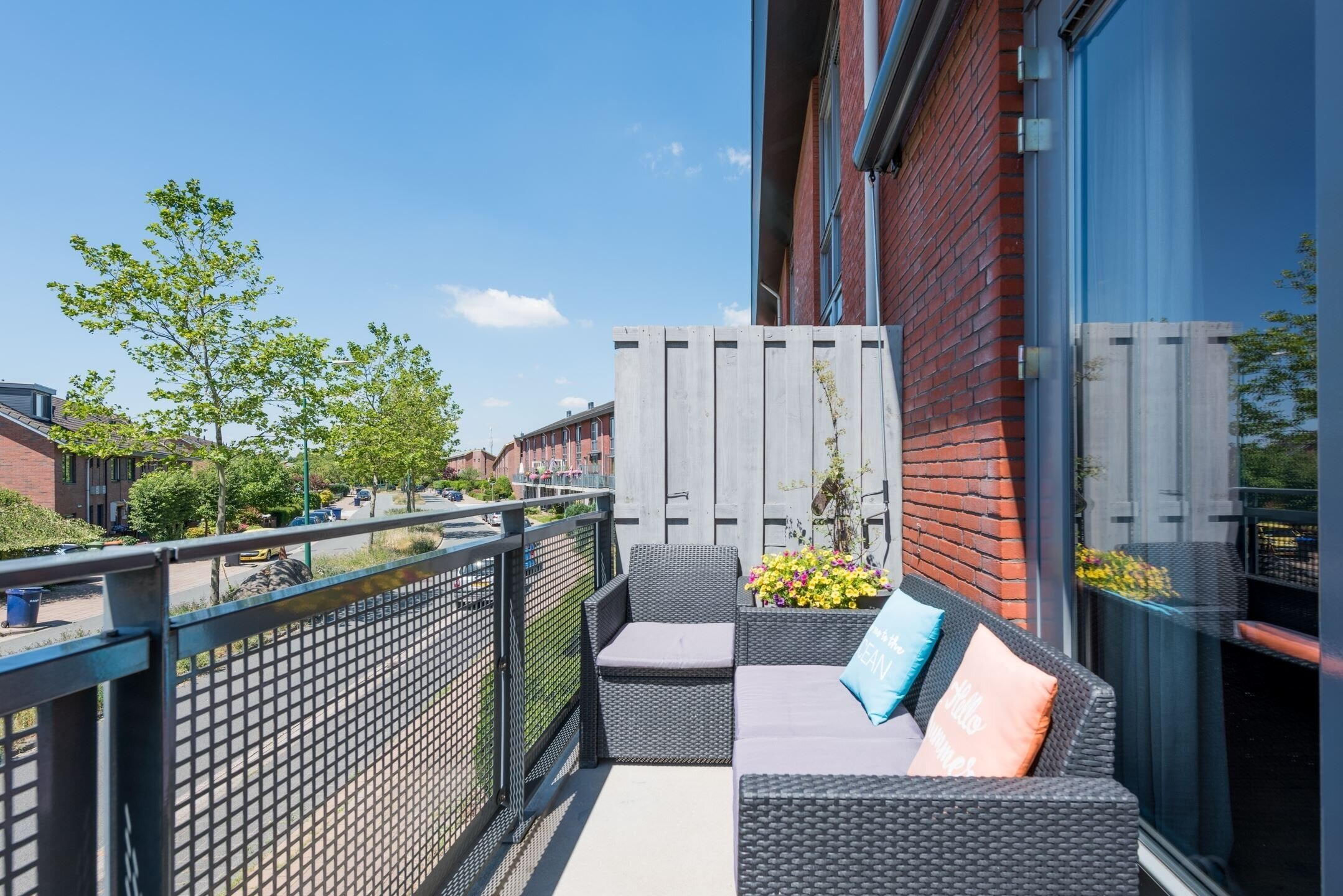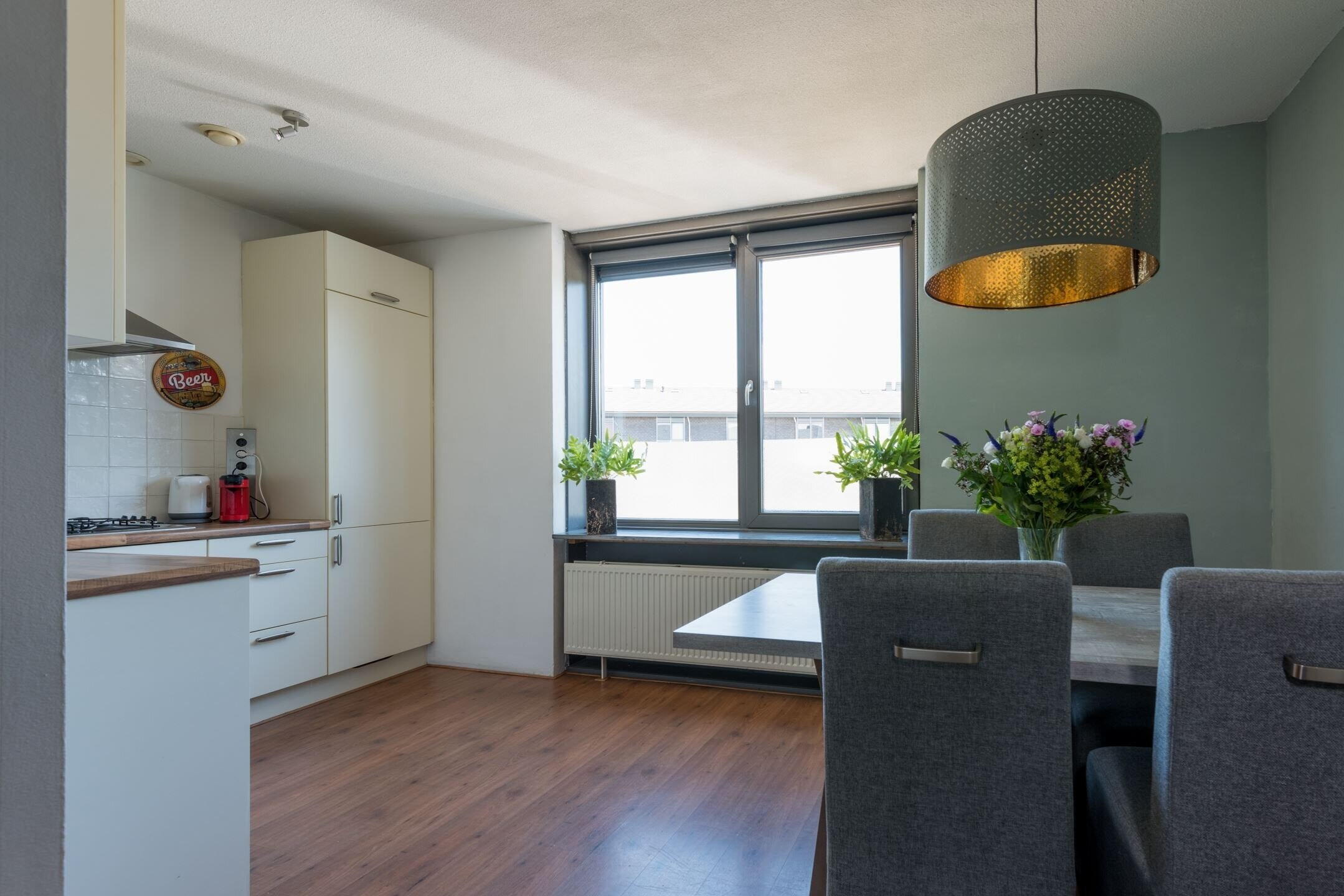 Aan woongenot geen gebrek: 1ste verdieping: Riante woonkamer v.v. een laminaatvloer en zonnige balkon, open keuken met diverse inbouwapparatuur 4 pits gasfornuis, combi oven, vaatwasmachine, afzuigkap, koelkast/vrieskast) en toilet met fonteintje.