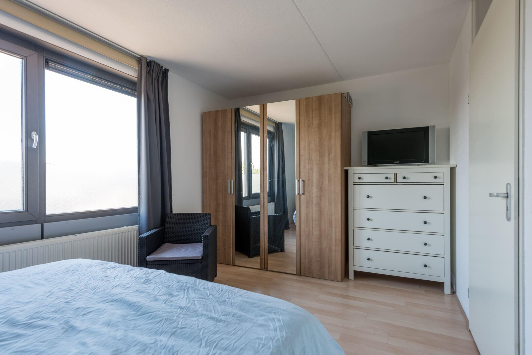 Er zijn 2 ruime slaapkamers, lichte woonkamer, open keuken, nette badkamer (ligbad), zonnig balkon en een berging v.v. elektra.