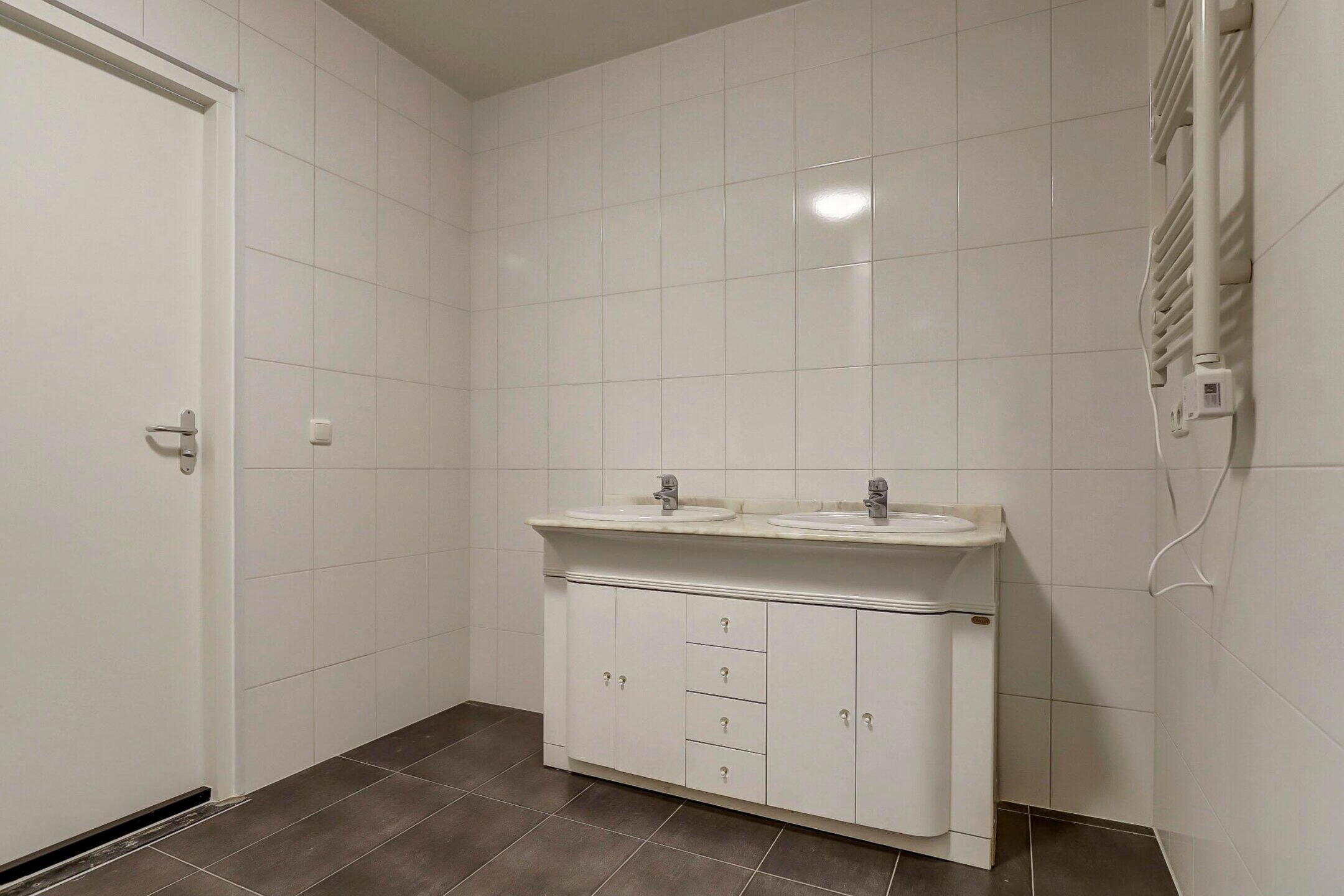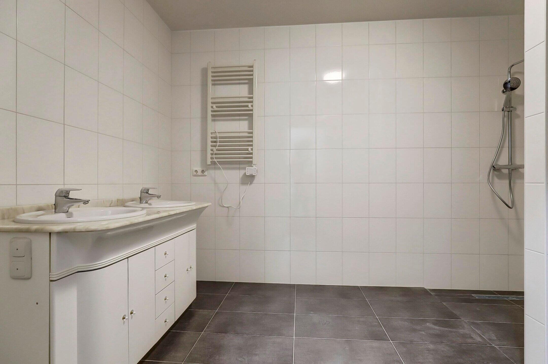 De badkamer is van alle gemakken voorzien met een dubbele wasbak, een stopcontact en een inloopdouche, waarmee comfort en luxe samenkomen.