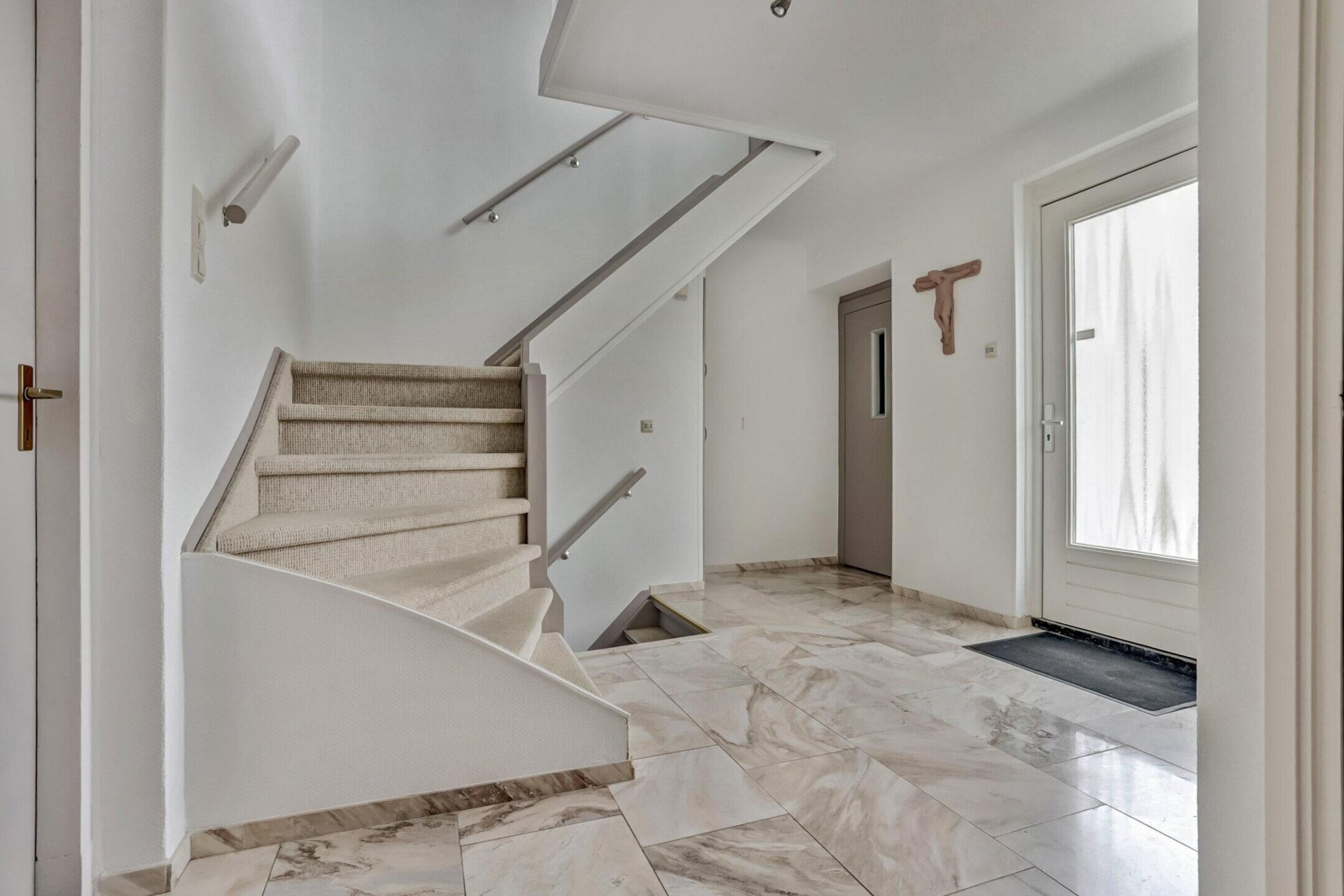 Via de eigen entree bereikt u de ruime hal met meterkast, trapopgang en liftinstallatie.