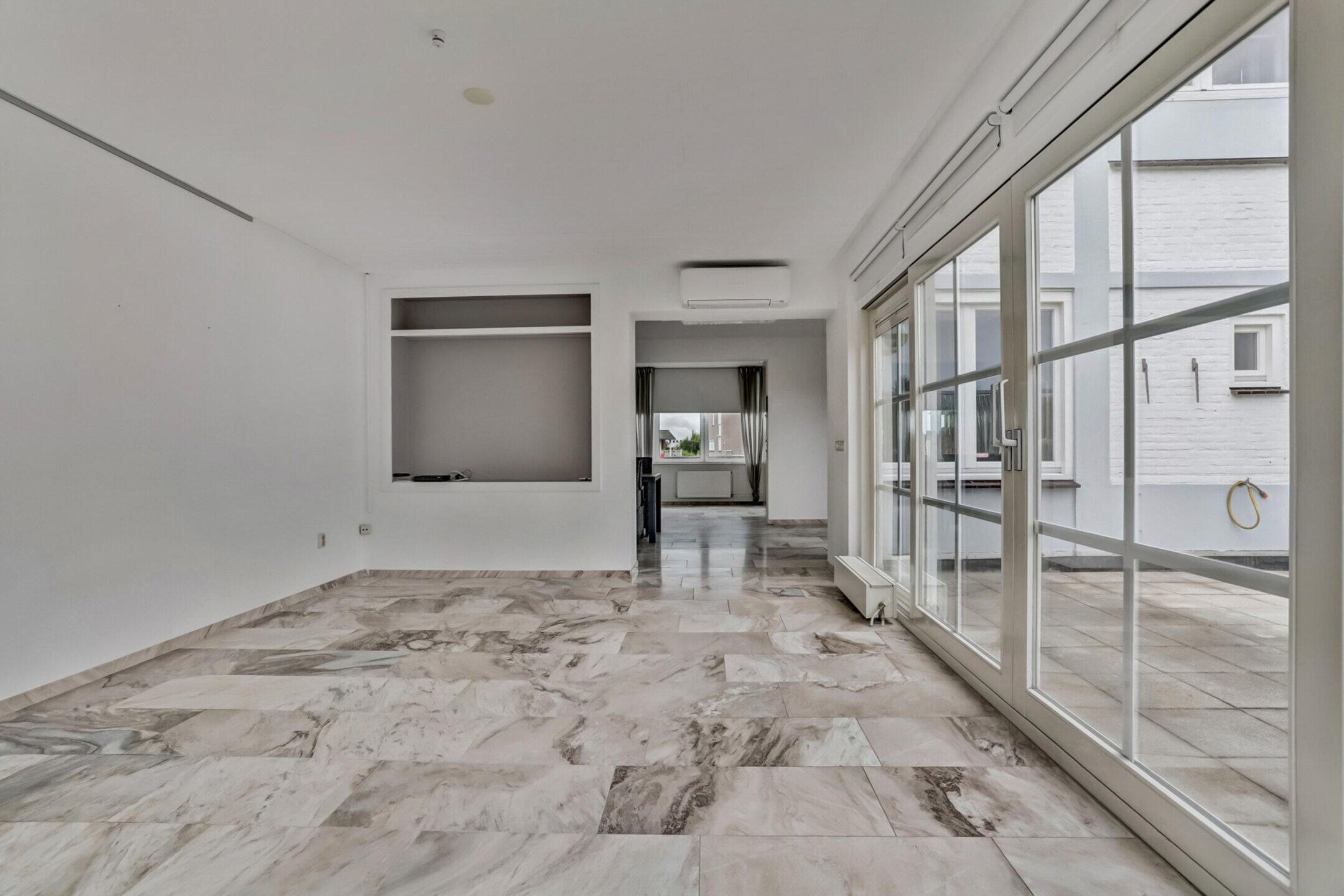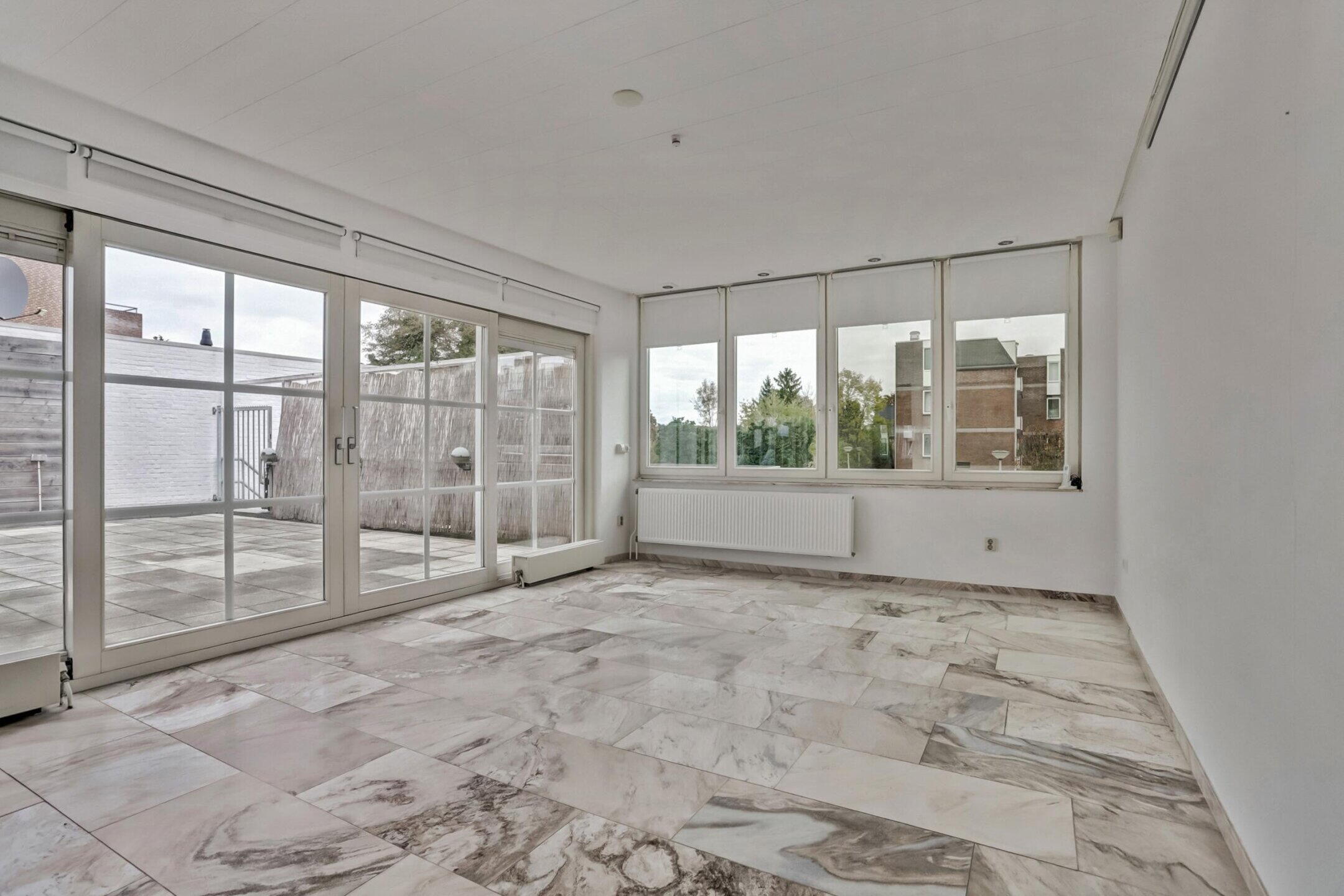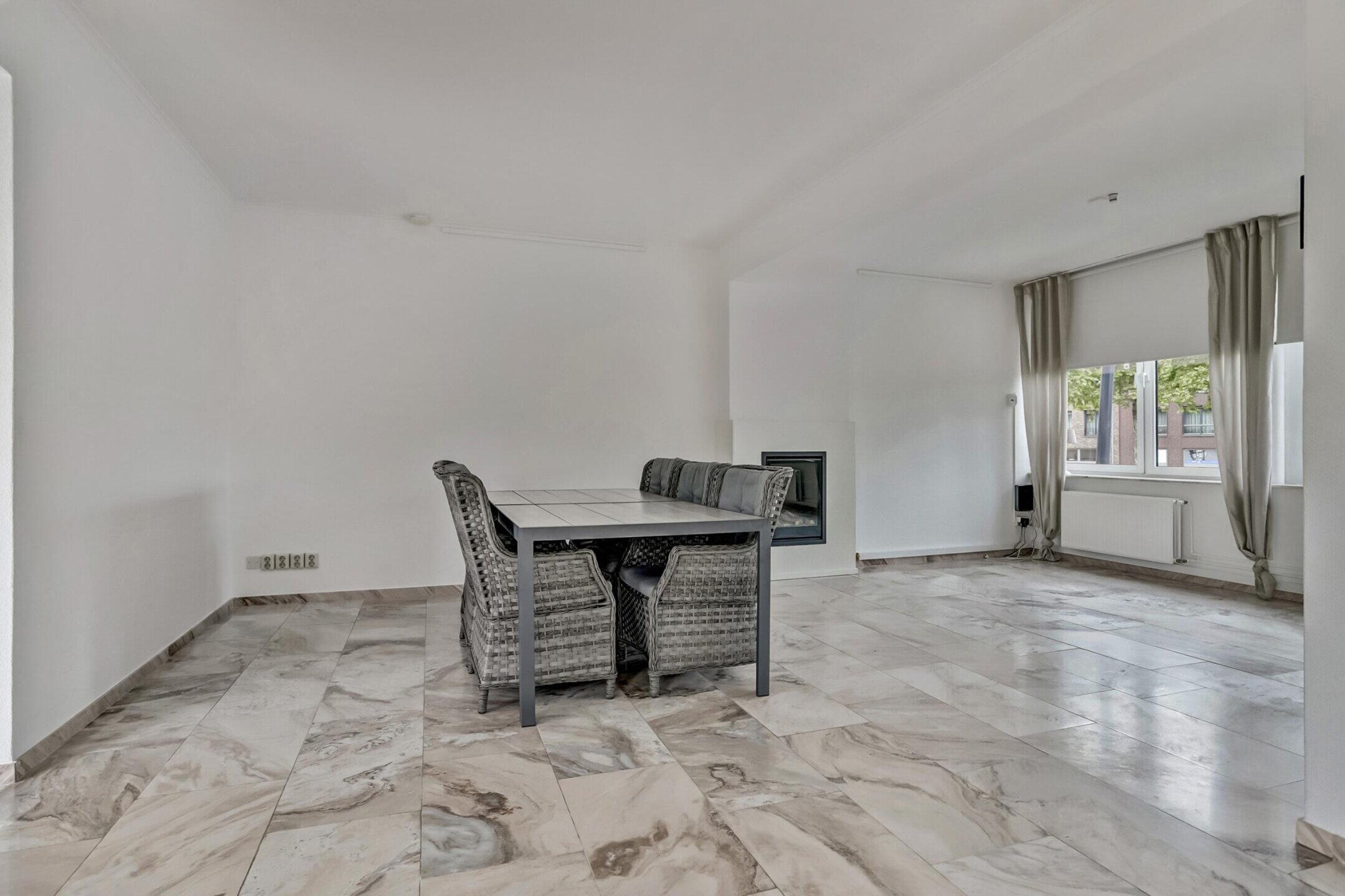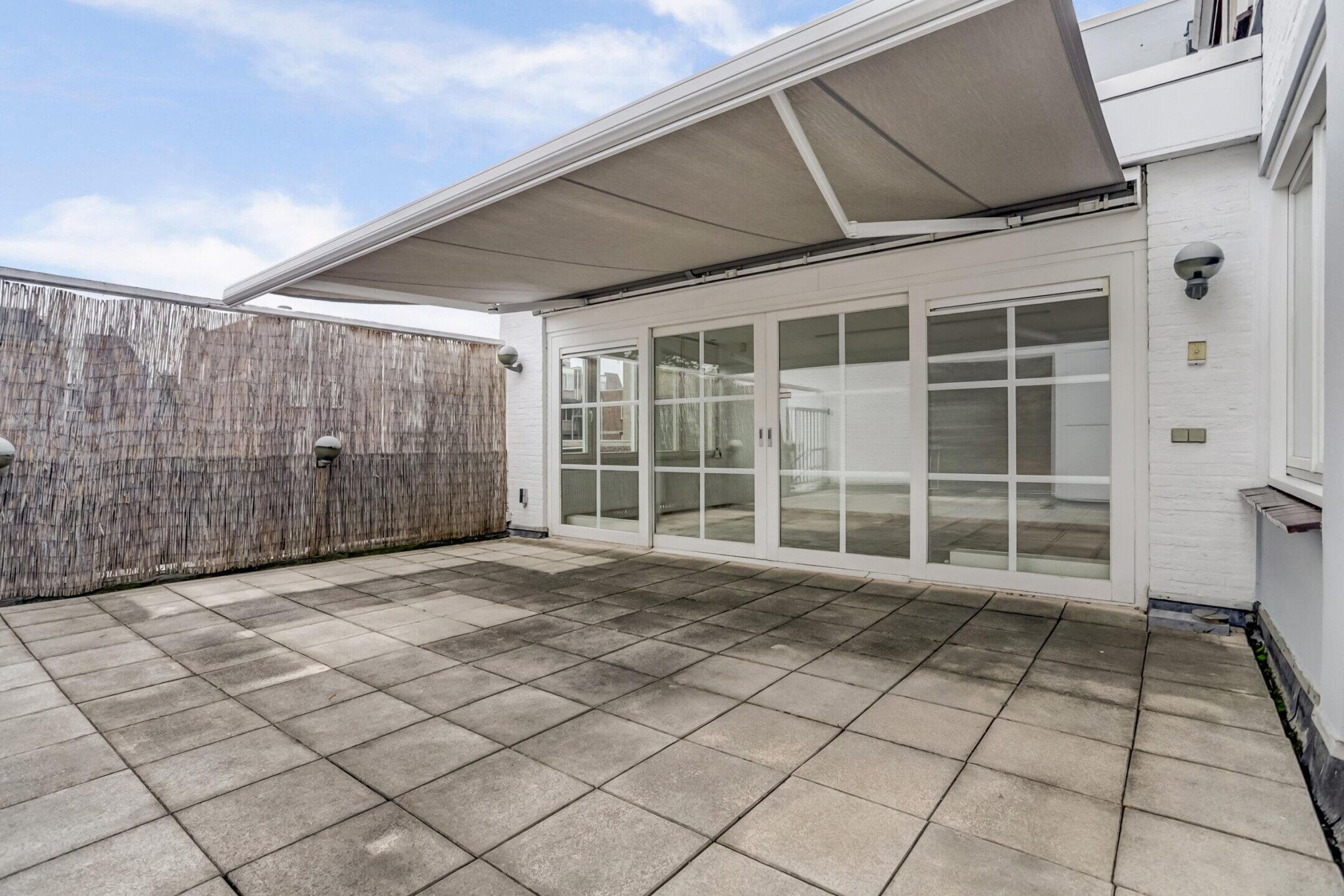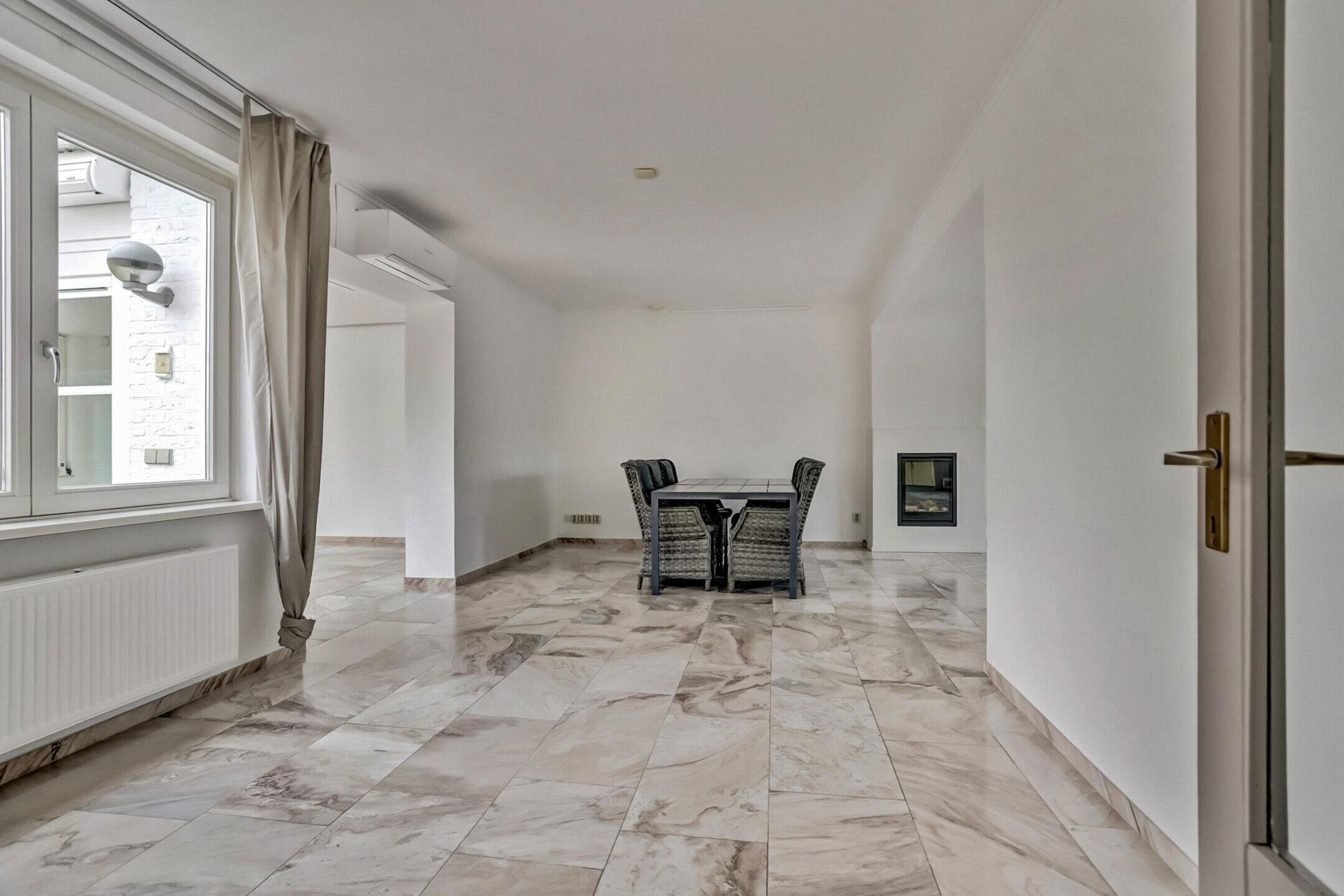 Royale en lichte woonkamer met een sfeervolle gashaard, voorzien van airconditioning en toegang tot het grote dakterras op het zuiden.