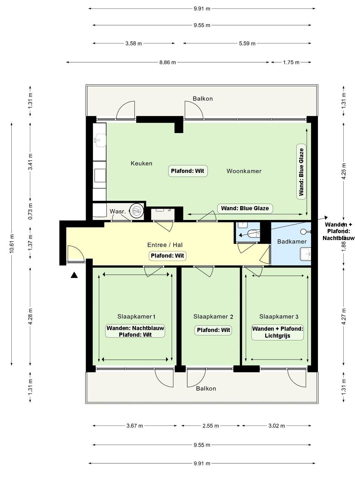 Slaapkamer II met deur naar balkon – 4,30m x 2,95m