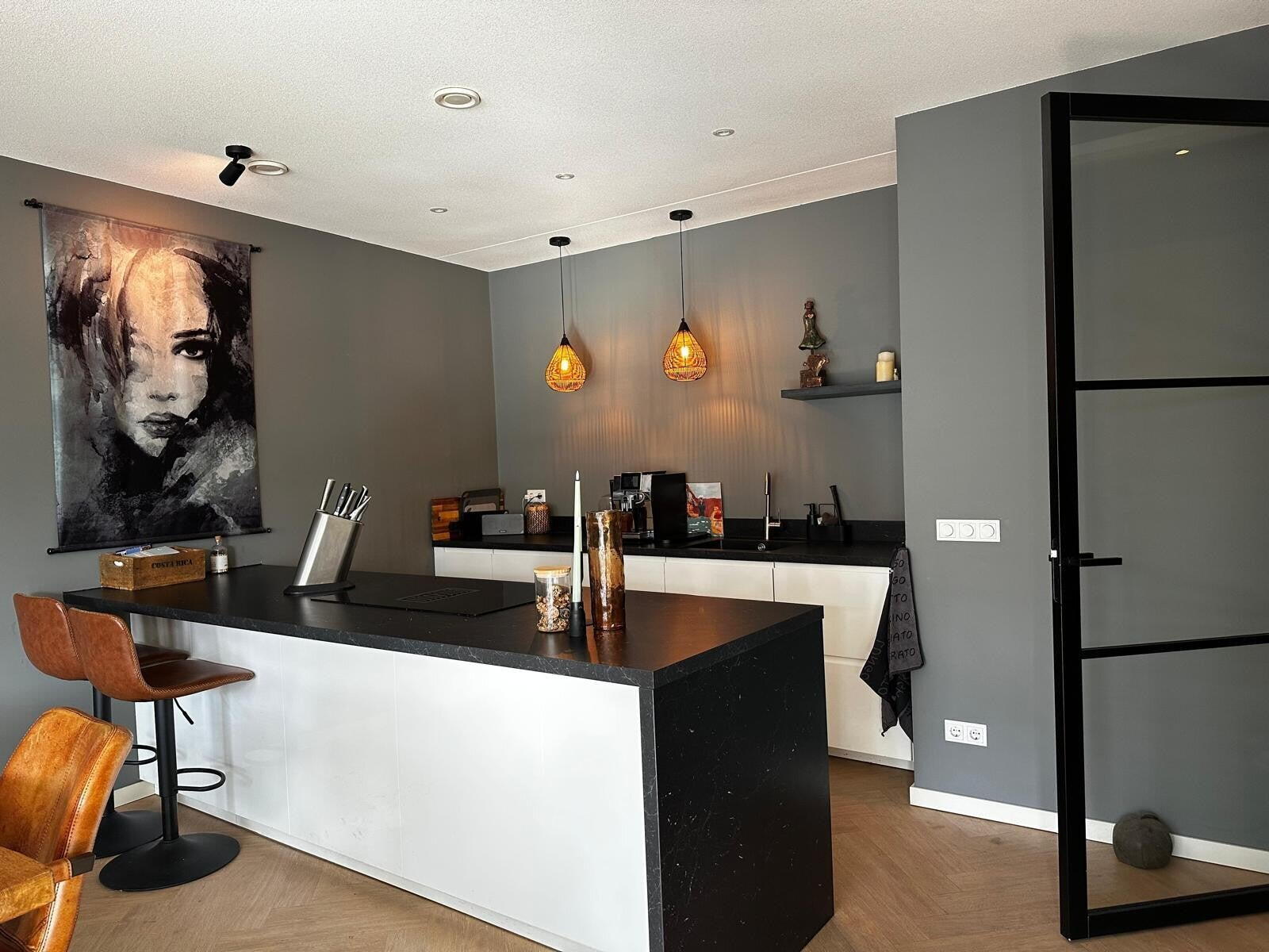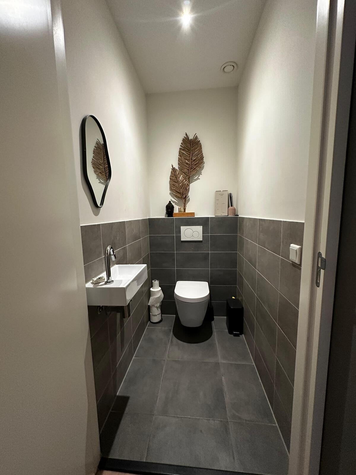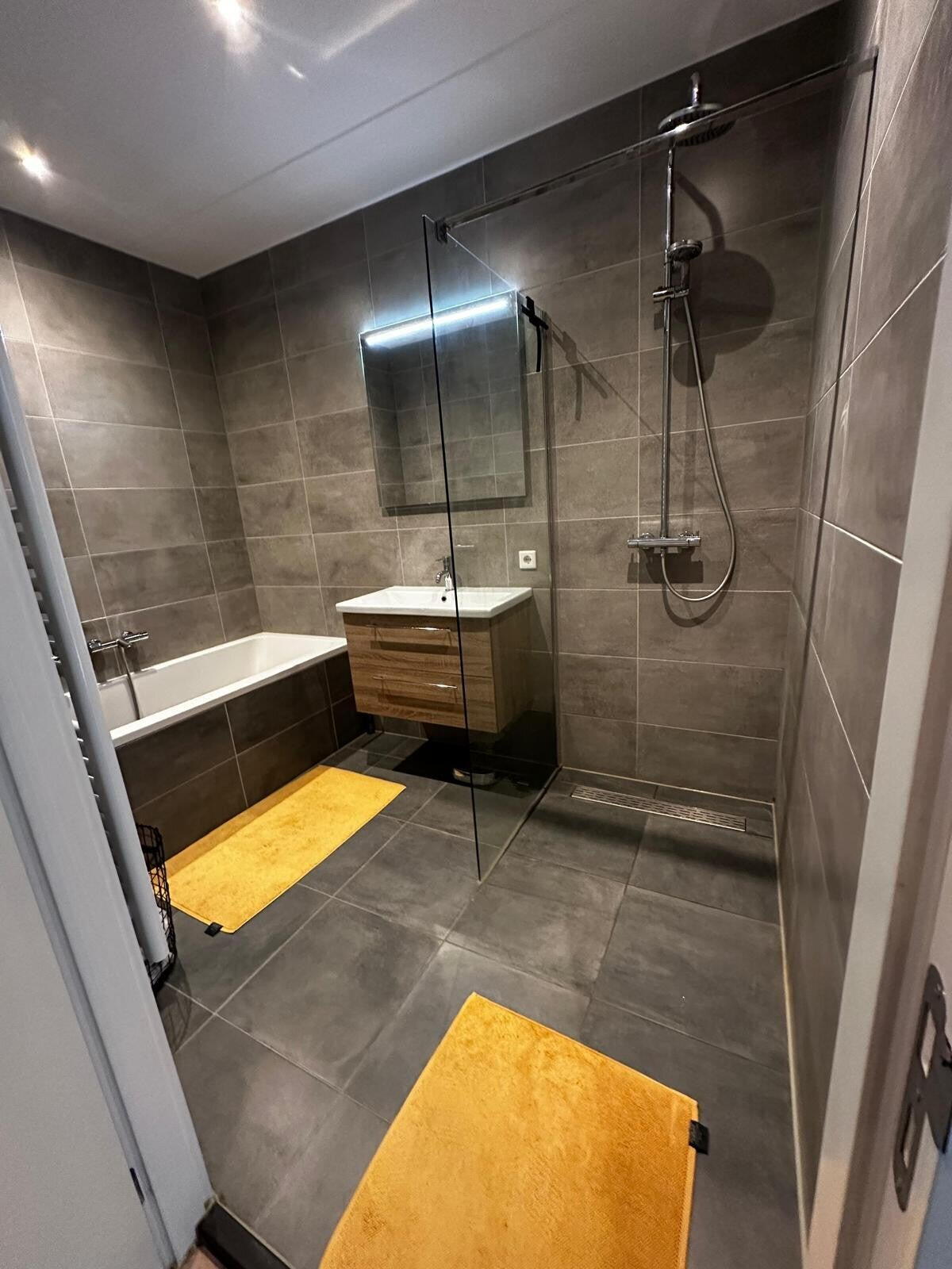 Het appartement is voorzien van een luxe badkamer met fraaie tegels en mooi sanitair.