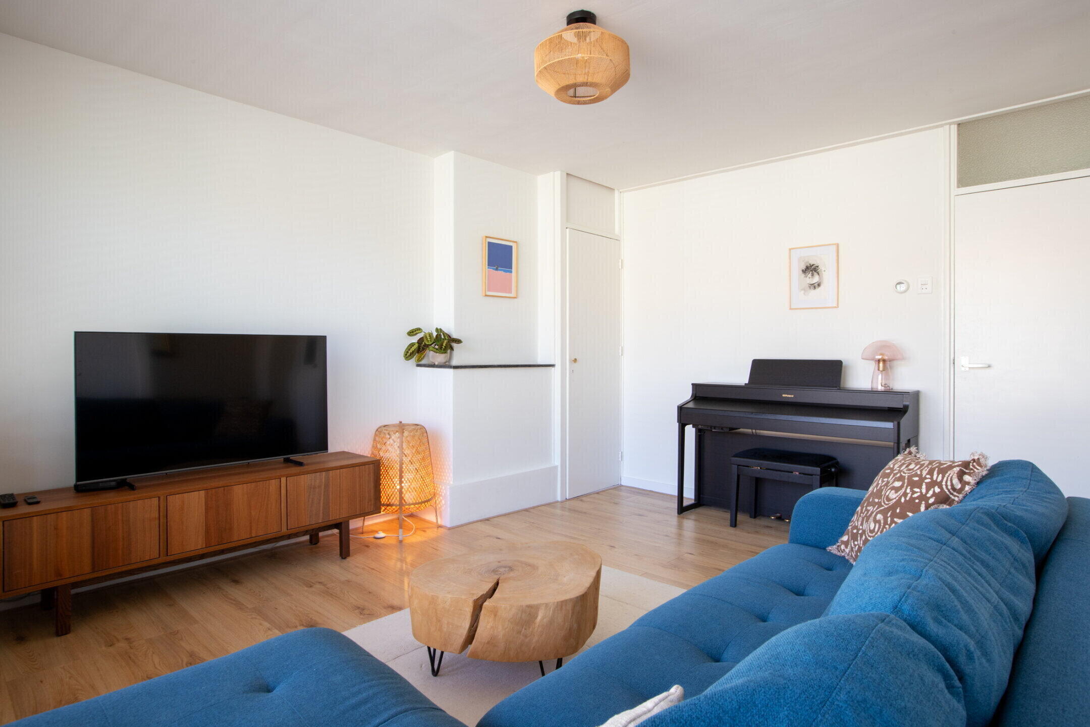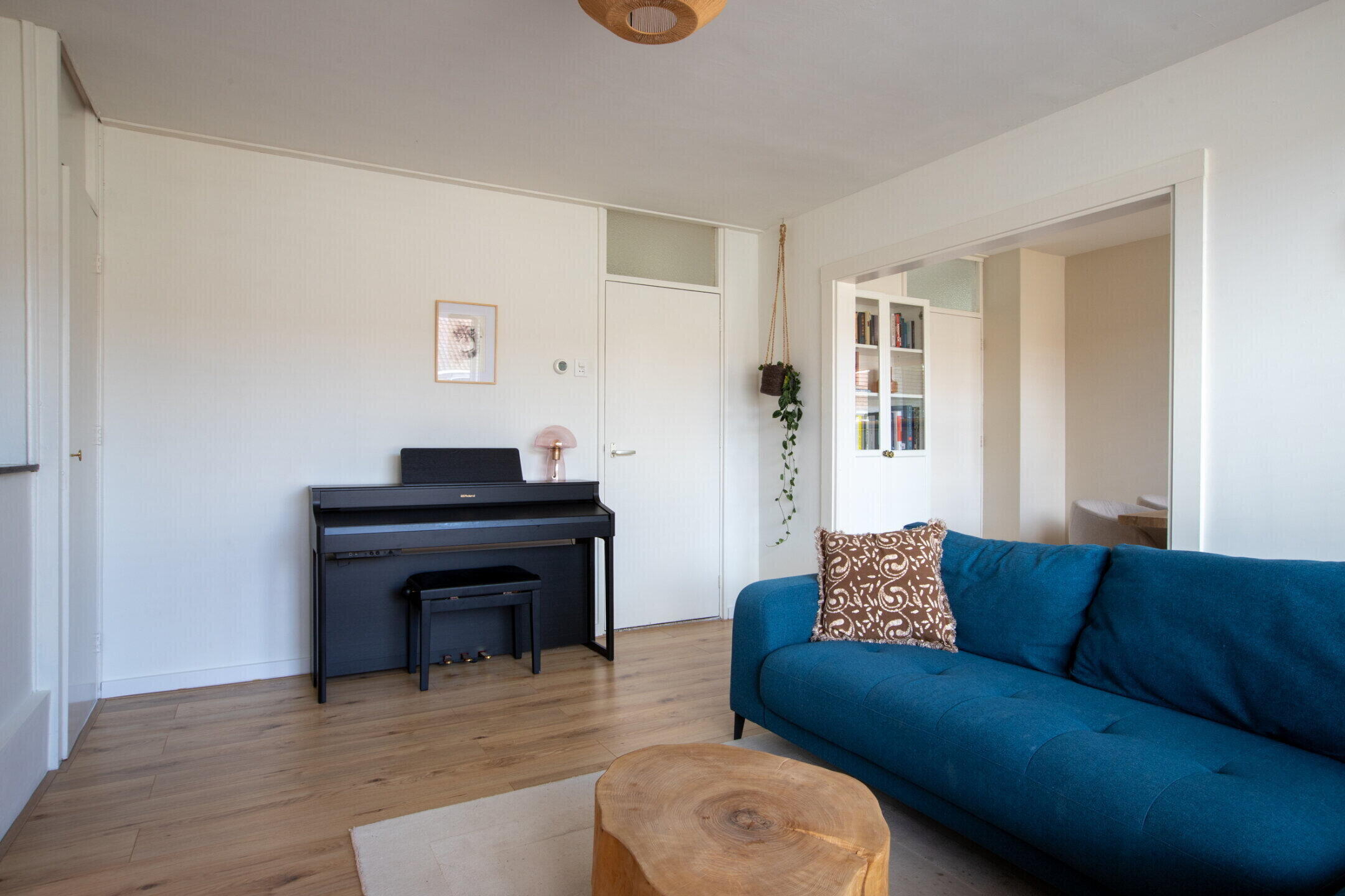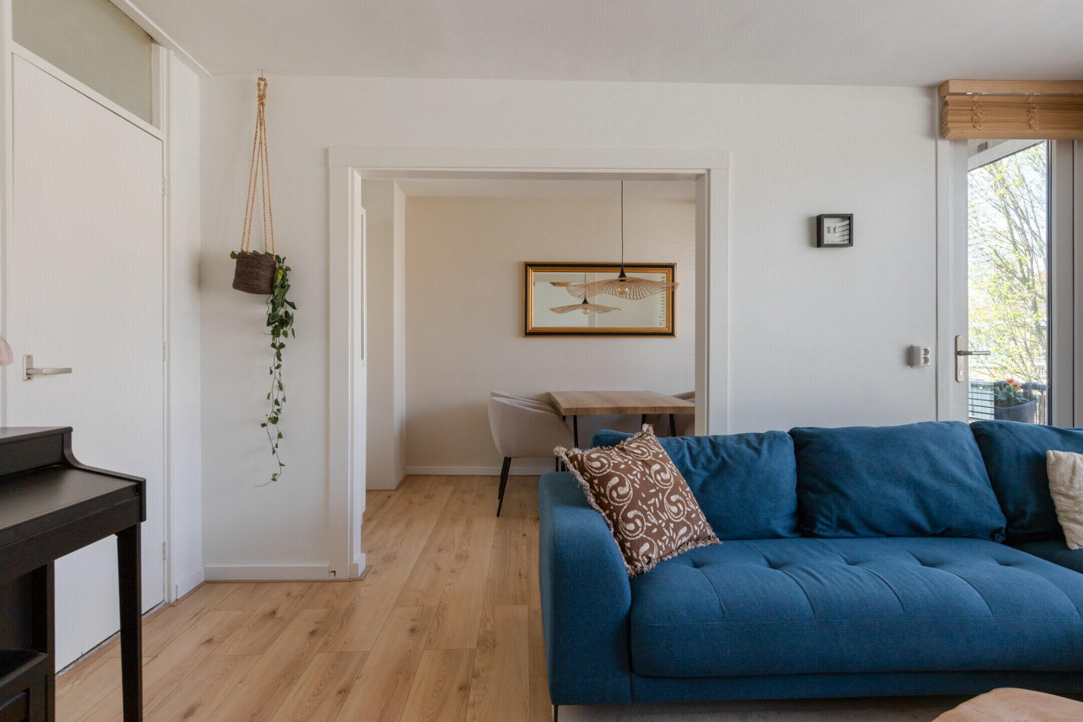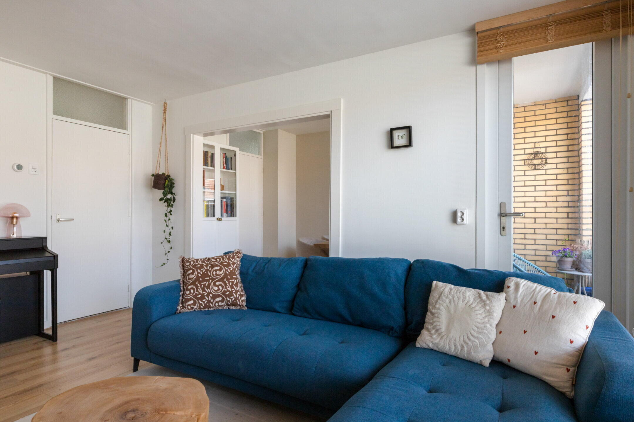 Grote doorzonliving van ca. 25 m2 voorzien van mooie laminaatvloer, strak gestuukte wanden en plafonds en toegang tot het balkon van ca. 3 m2 gelegen op het westen.