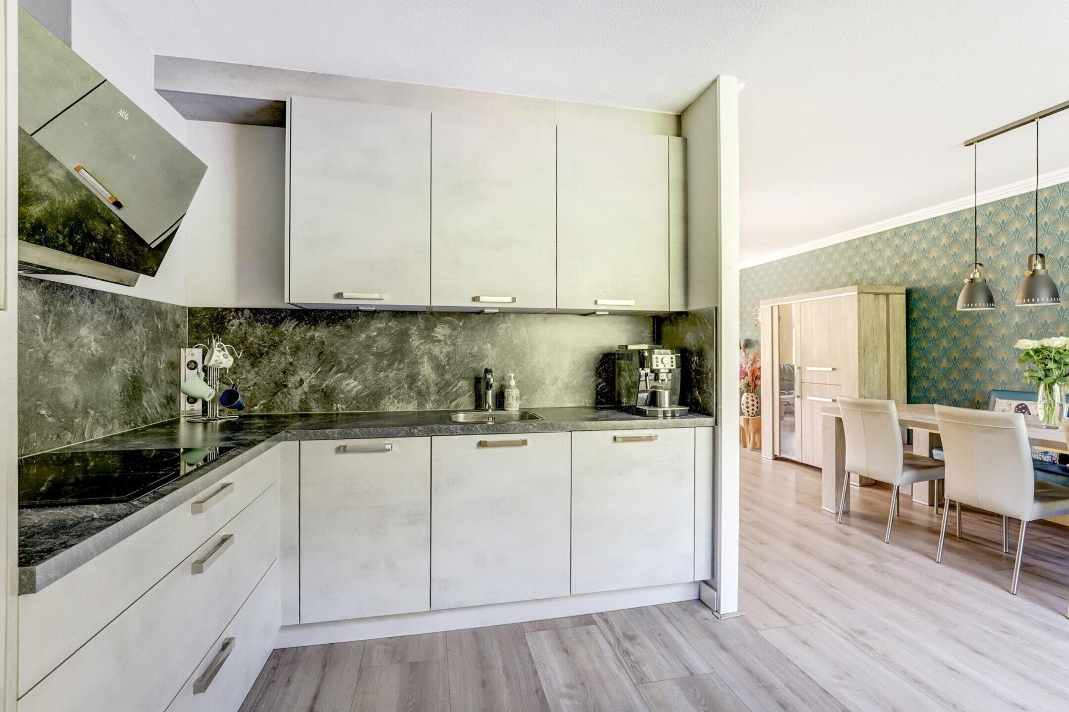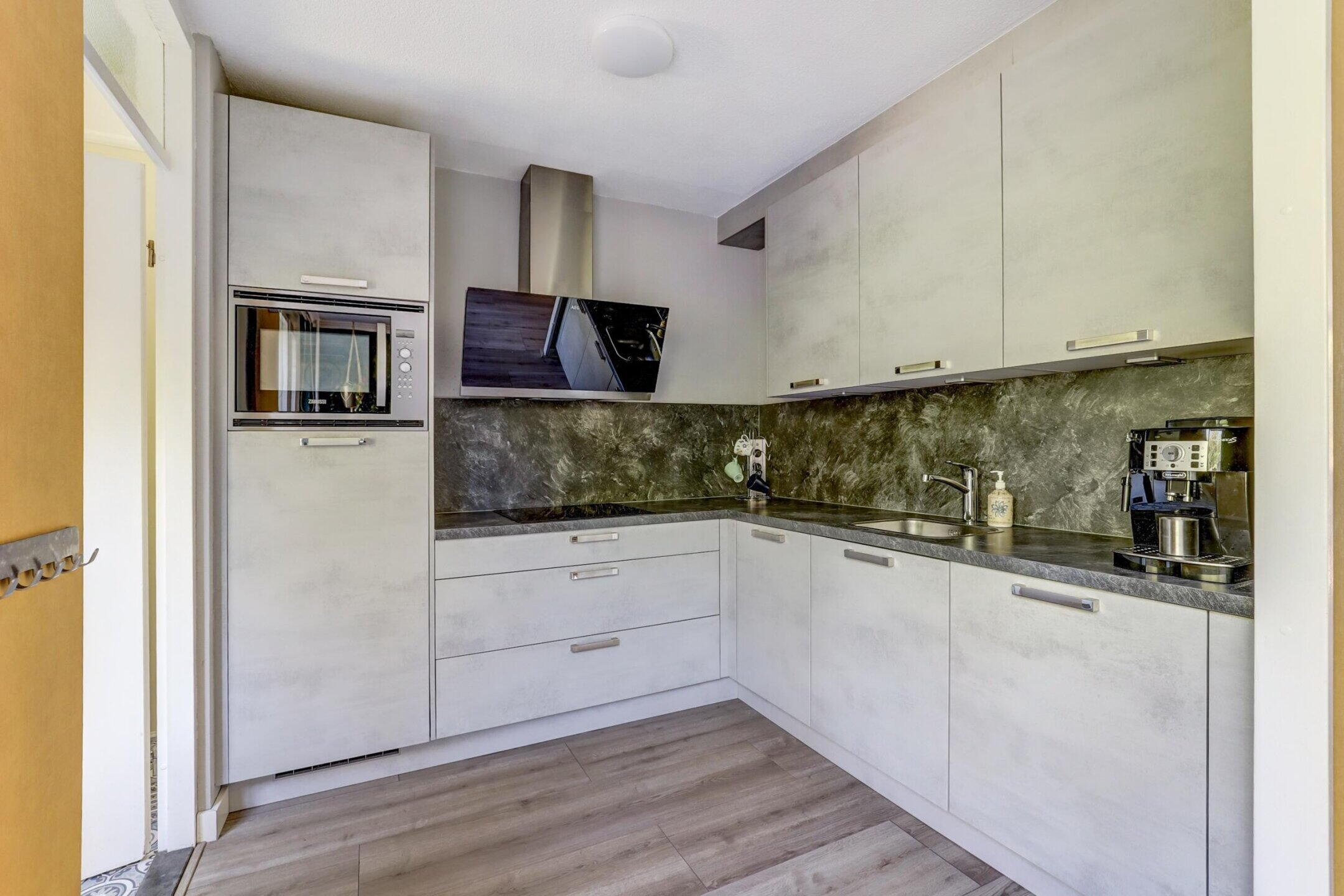 De keuken (2.42 x 2.71 meter) is uitgerust met moderne apparatuur, waaronder een vaatwasser, koelkast en combi-magnetron (2018).