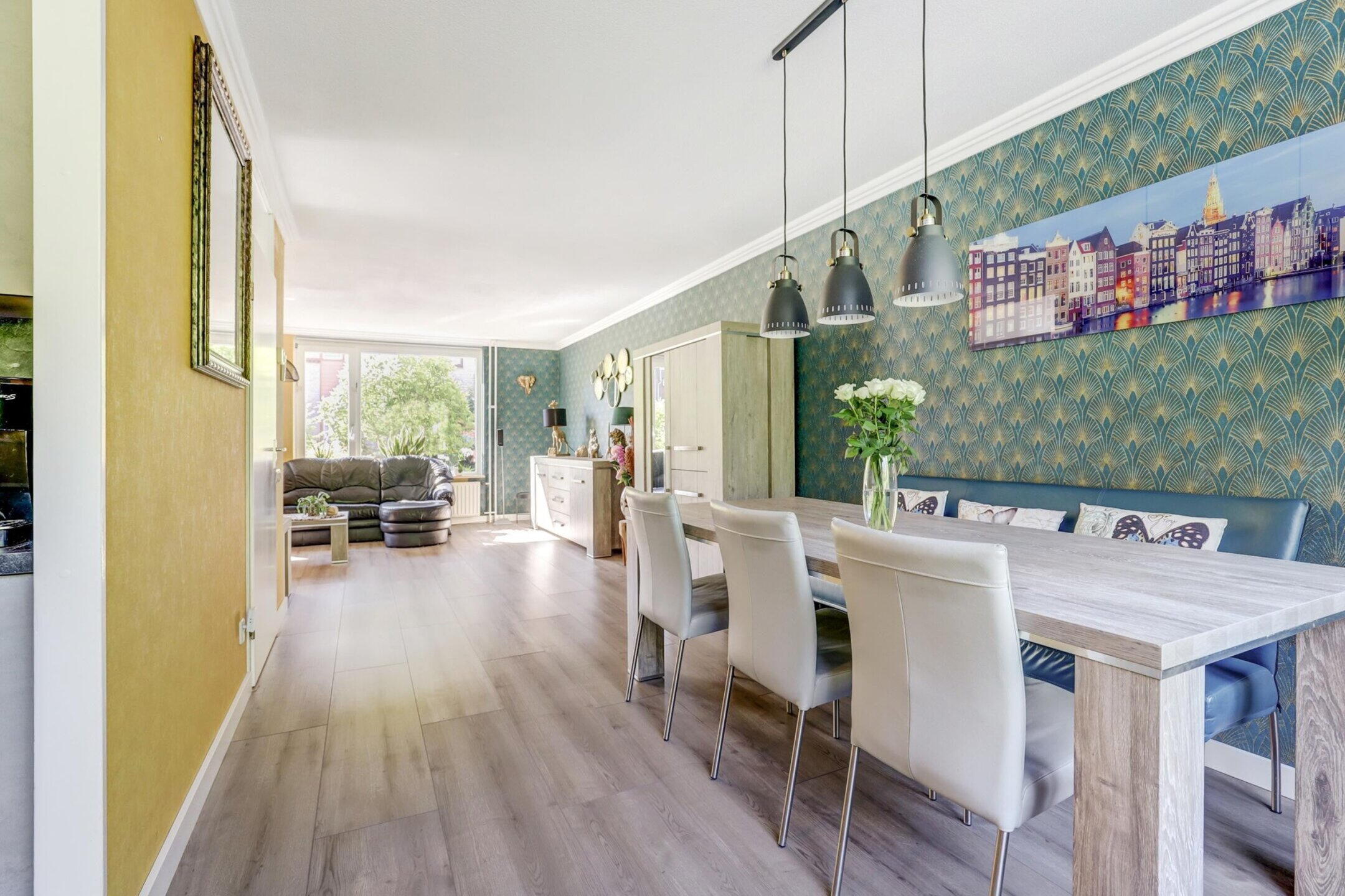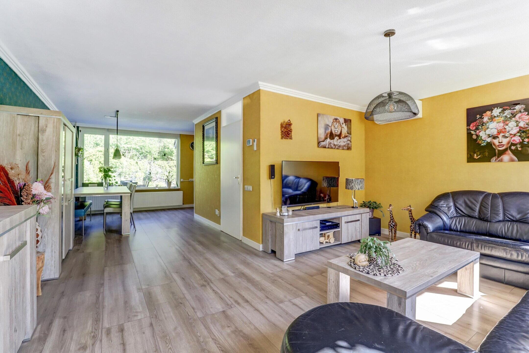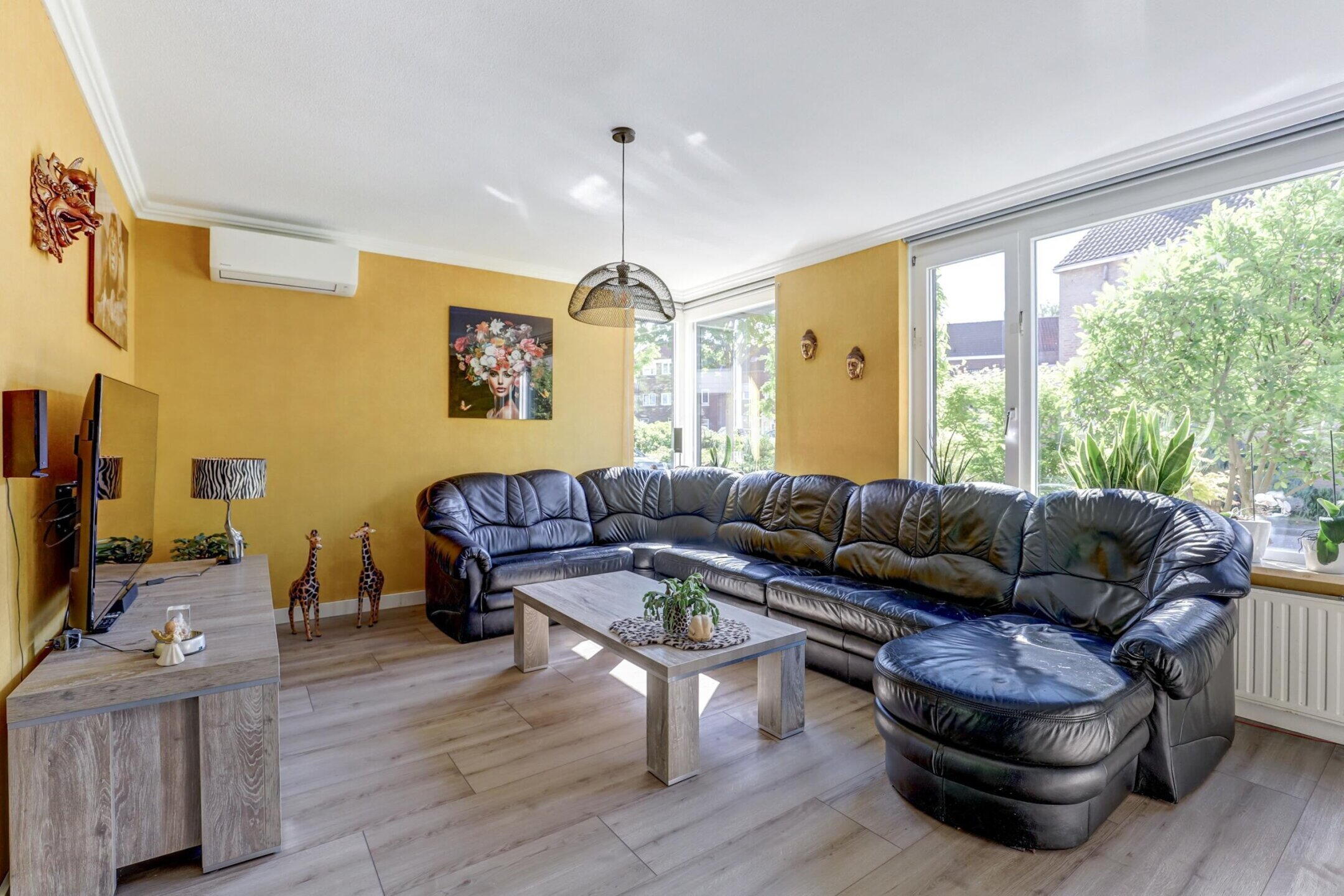 De ruime woonkamer (5.45 x 8.89 meter) is voorzien van airco (2022) en heeft toegang tot de achtertuin.