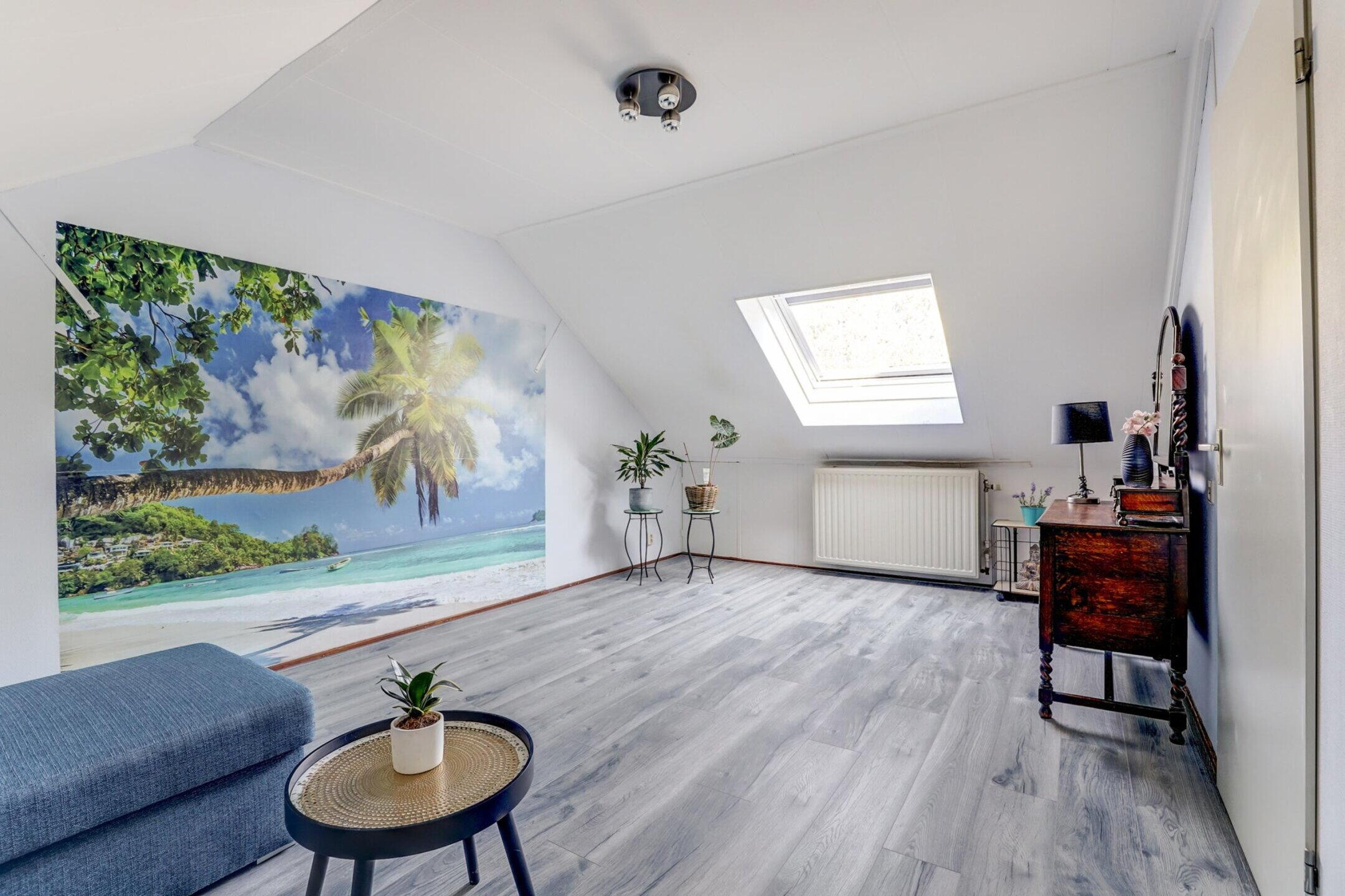 Slaapkamer 4 (3.23 x 3.23 meter) heeft een dakraam en biedt volop mogelijkheden voor een extra kamer of opslagruimte.