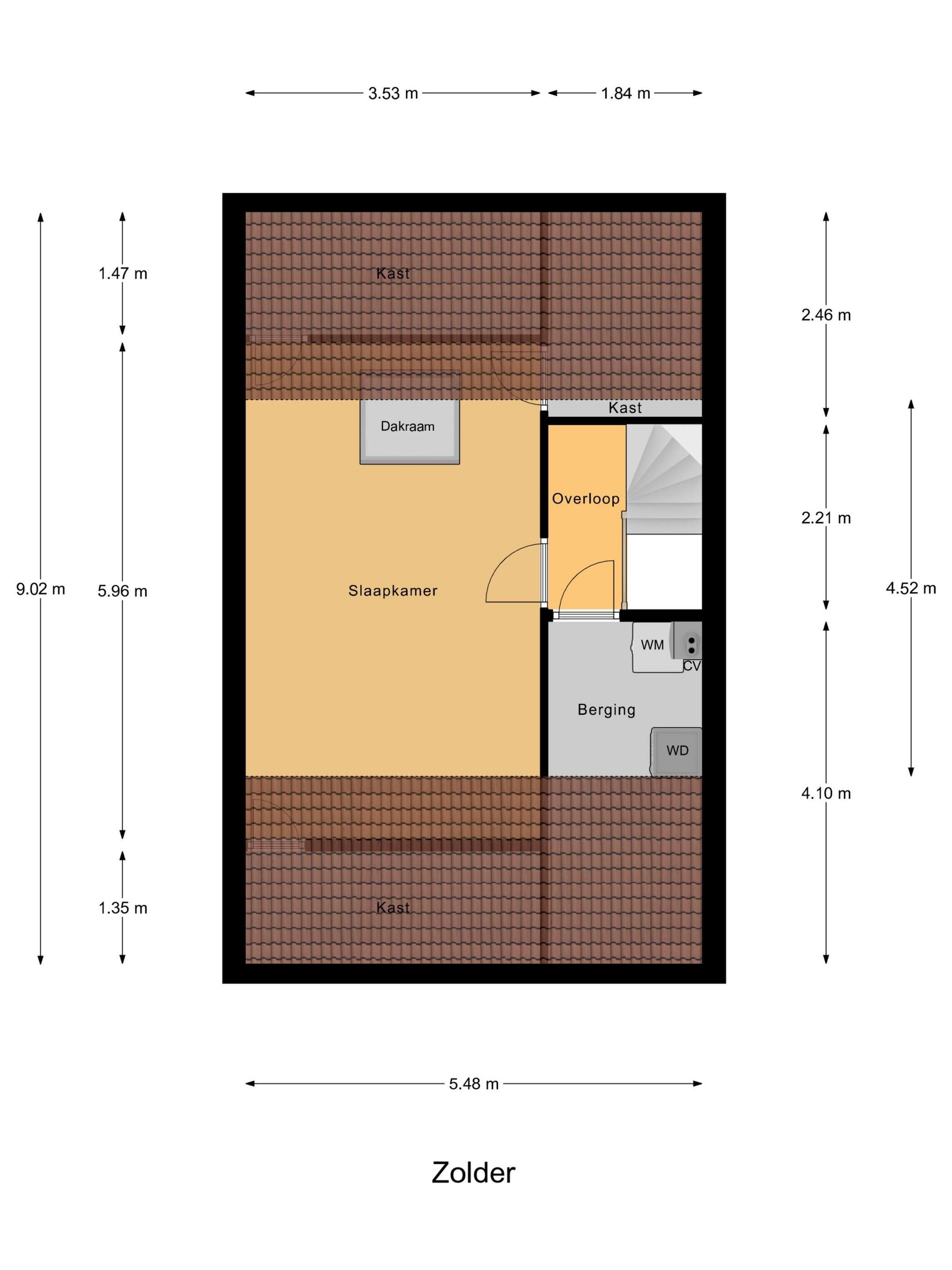 Op de zolder is er ook een bergingsruimte (4.52 x 2.46 meter), waar de CV-ketel (2020) en de mechanische ventilatie zijn geïnstalleerd.