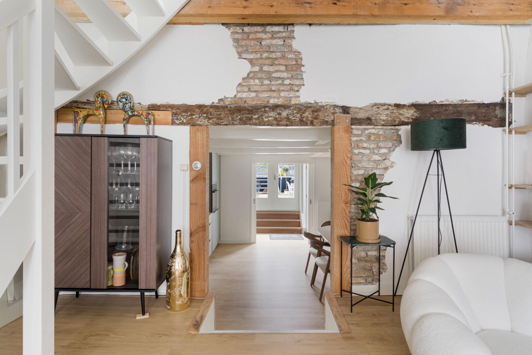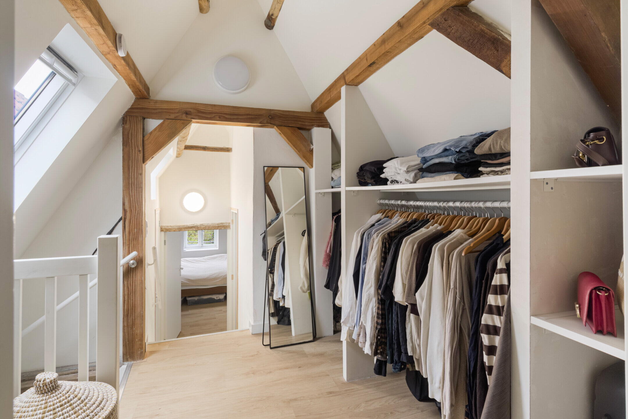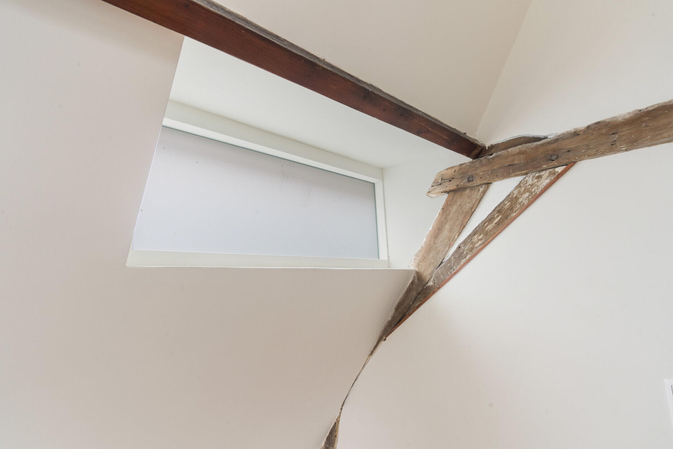 - Bovenverdieping geïsoleerd met karaktervolle spanten en gordingen;