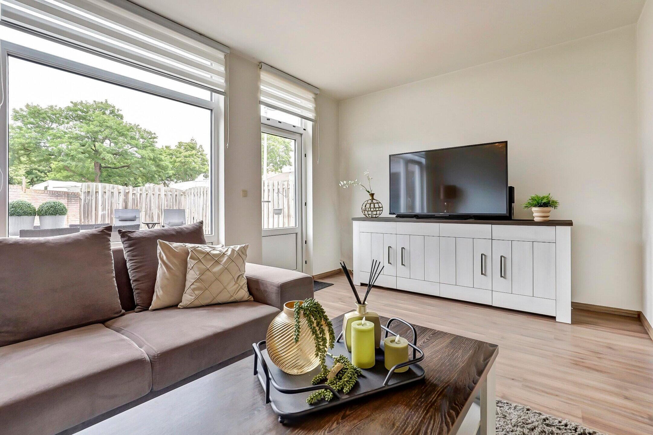 De achtertuin is verzorgd en onderhoudsvriendelijk aangelegd. Dankzij de hoekligging beschikt de tuin over extra breedte en een vrije achterom. Ideaal voor tuinliefhebbers of om heerlijk buiten te zitten.