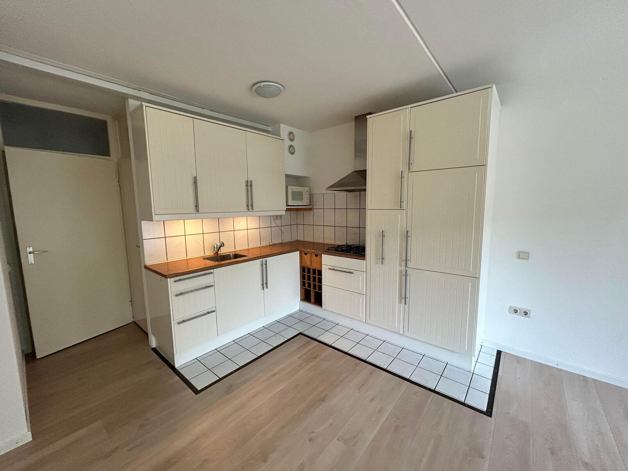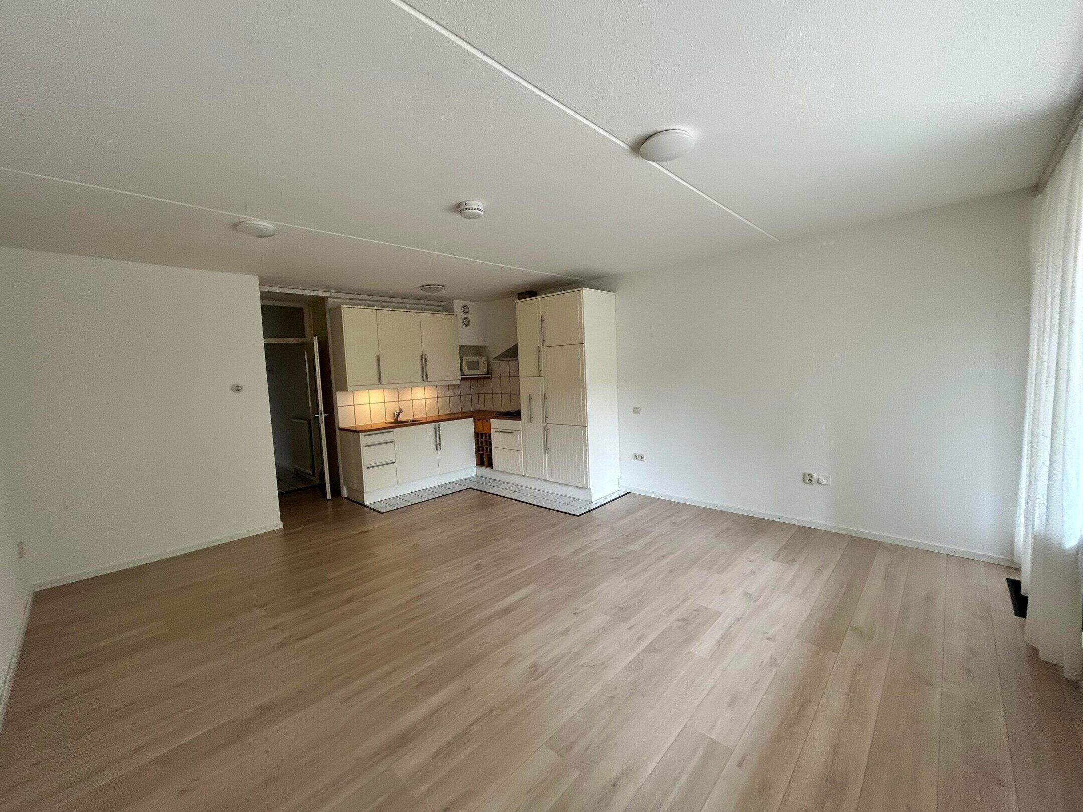 Globale indeling: Entree. Hal (3 x 1 m) v.v. tegelvloer en opbergkast (opstelplaats cv-ketel). Woonkamer (6 x 5 m) met open keuken. De keuken beschikt over een 4-pits gaskookplaat, een inbouw koelkast, een inbouw diepvrieskast, een inbouw vaatwasmachine en een apothekerskast. De woonkamer is v.v. een laminaatvloer en heeft veel lichtinval. Vanuit de woonkamer is de onderhoudsvrije tuin (5 x 4 m) met veel privacy bereikbaar. Slaapkamer (4 x 2 m) v.v. laminaatvloer. Badkamer (3 x 1,6 m) v.v. tegelvloer, douche met thermostaatkraan, zwevend toilet, wastafel en aansluitingen voor wasmachine en droger.