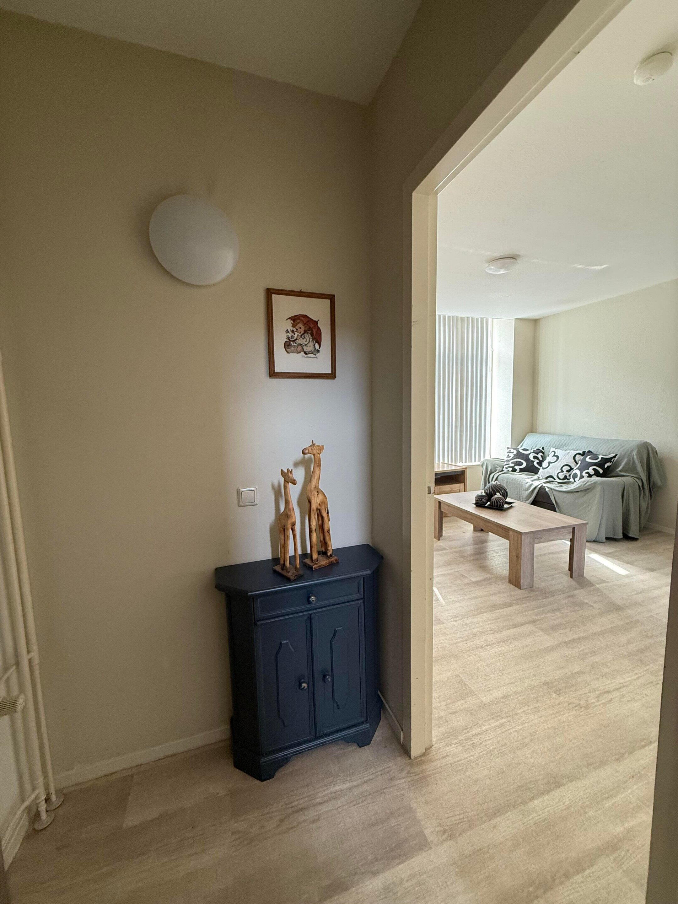 Binnenkomst in de hal met toegang tot de slaapkamer, badkamer, toilet en woonkamer.