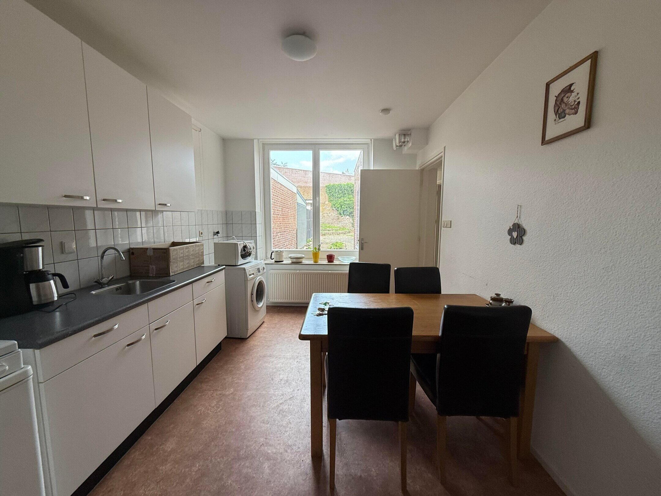 De gesloten keuken is uitgerust met boven- en onderkasten, spoelbak, koelkast en basisuitrusting. Tevens is er een wasmachine aanwezig. Vanuit de keuken is er directe toegang tot de tuin.