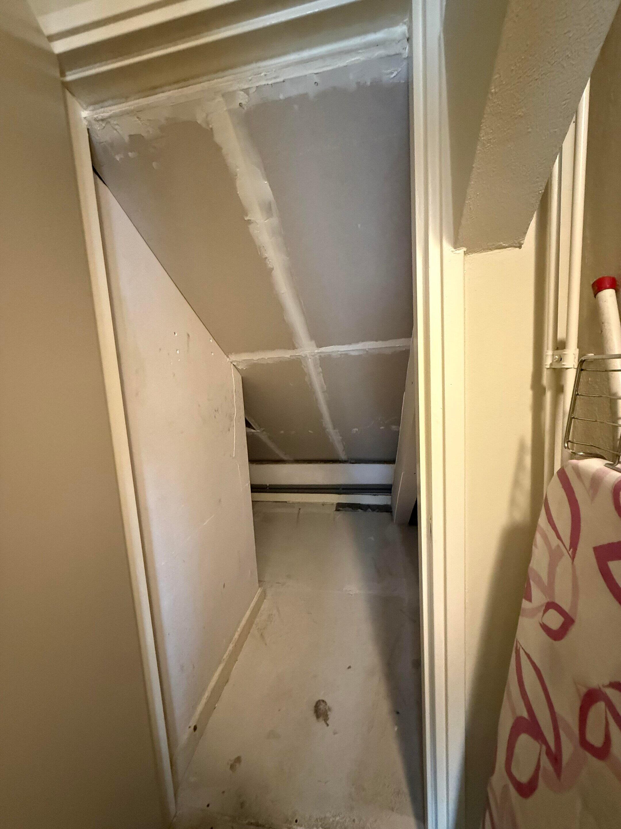 Binnenkomst in de hal met toegang tot de slaapkamer, badkamer, toilet en woonkamer.