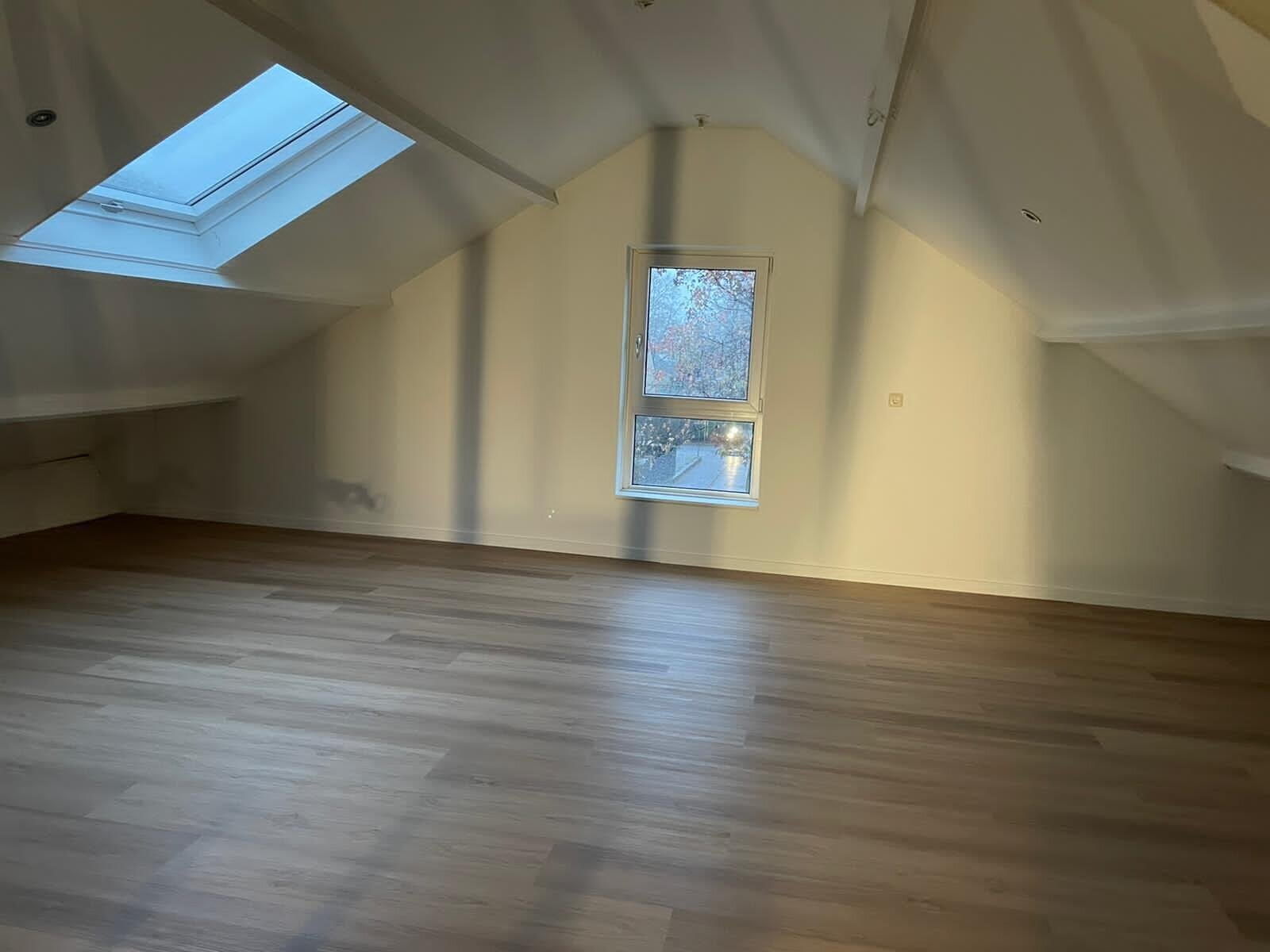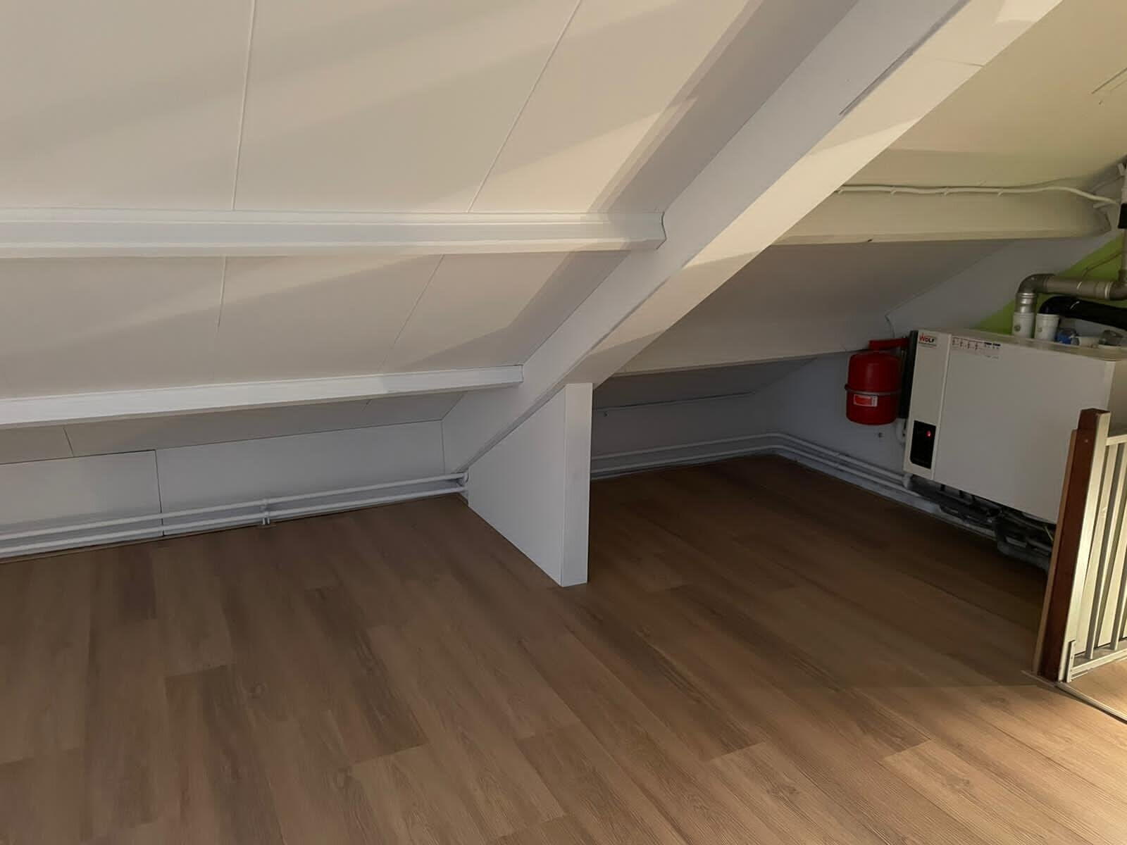 Trapopgang, ruime zolder voorzien van airco. en pvc vloer