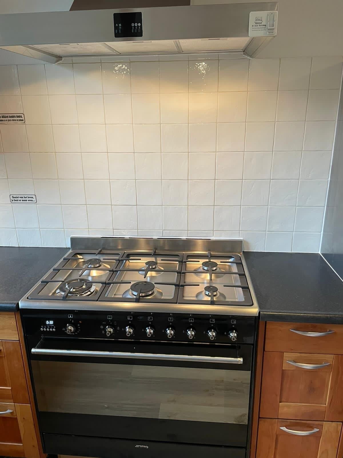 Entree, hal, open garderobe ruimte, toilet v.v. fonteintje, meterkast, deur naar ruime woonkamer v.v. pvc-vloer, trapopgang, nieuwe moderne keuken met lichte keukenopstelling v.v. SMEG 6-pitsgas fornuis met oven. Vaatwasser en ATAG koel-vries combinatie.