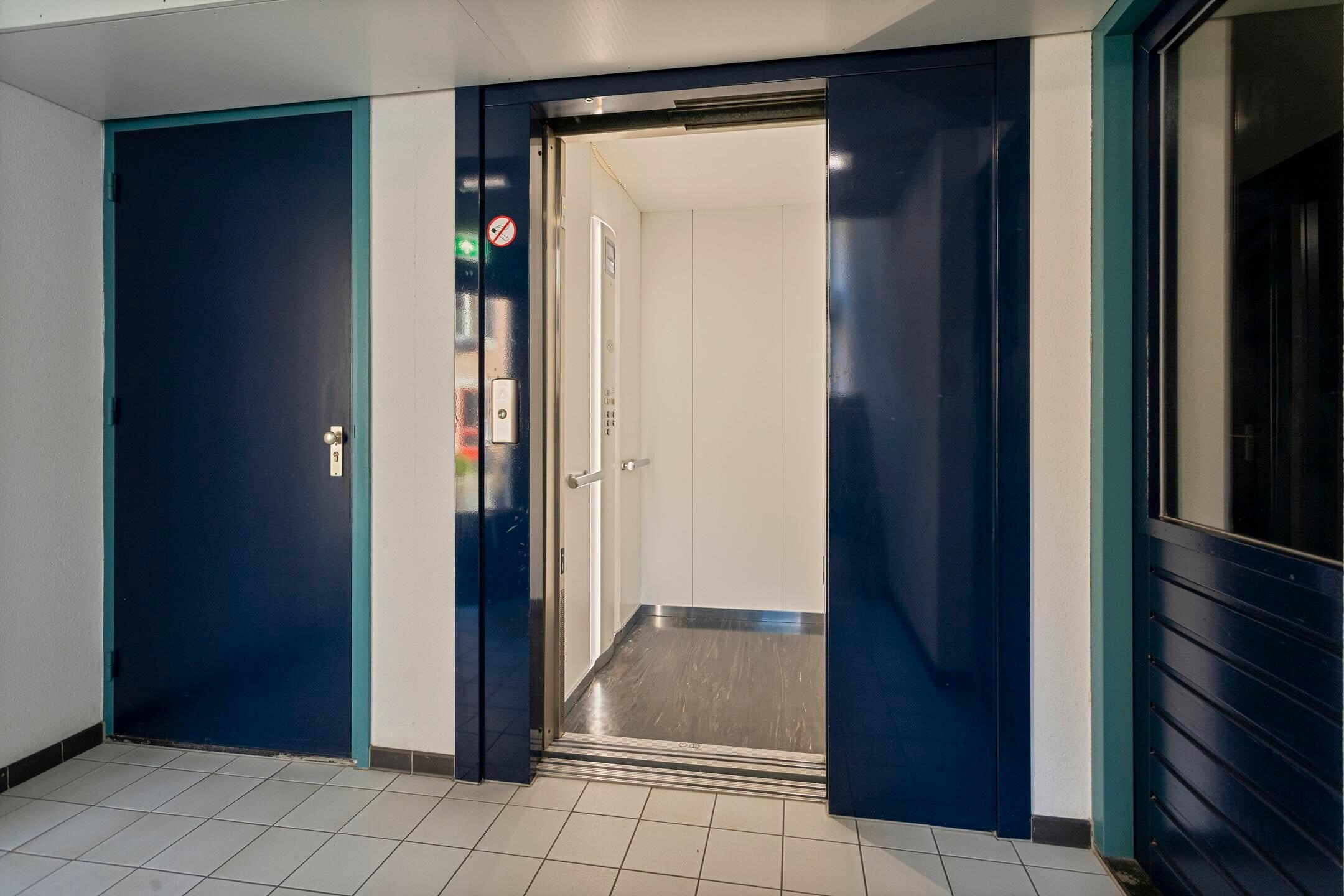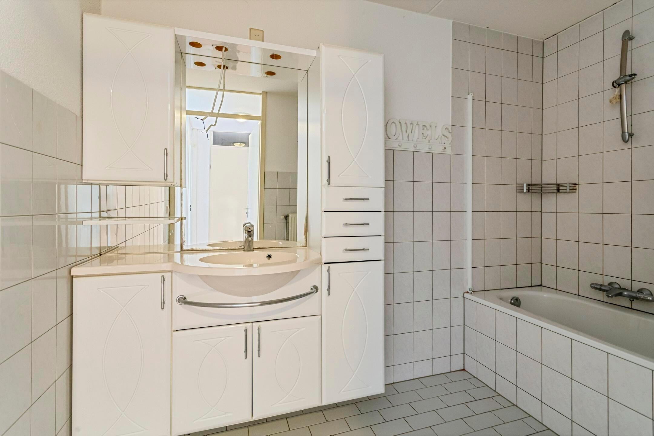 Dit appartement ligt op de eerste verdieping van dit complex en er is een lift aanwezig. De overloop geeft toegang tot de woonkamer, toilet, wasruimte, 2 slaapkamers en de badkamer. De woonkamer heeft een open keuken en geeft toegang tot het balkon. De 2 slaapkamers hebben een afmeting van 2,50 x 3,37 meter en 2,97 x 3,91 meter. De badkamer is voorzien van een bad en wastafel.