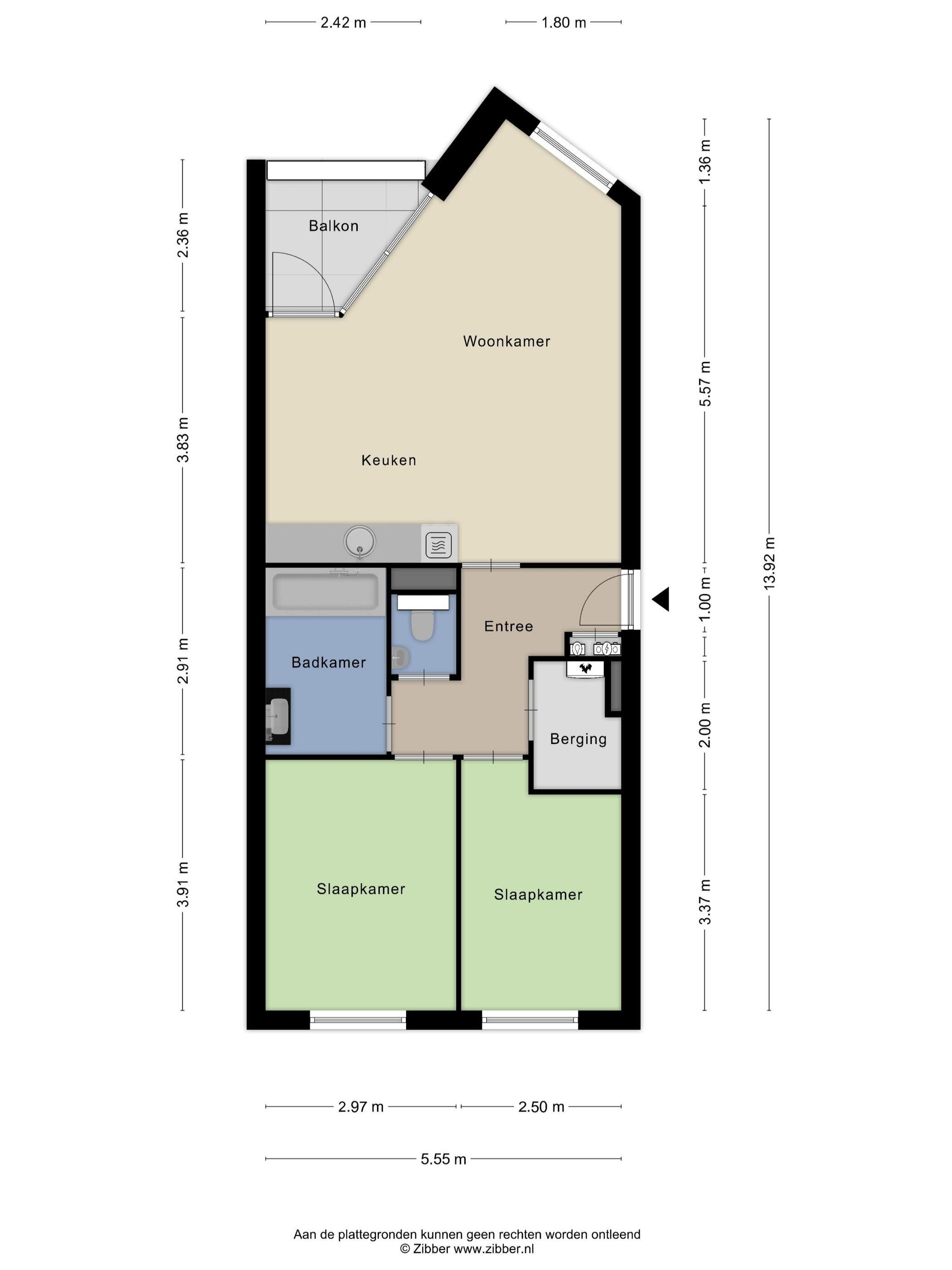 Alle vermelde maten en afmetingen zijn slechts bij benadering. Aan deze beperkte informatie kunnen geen rechten worden ontleend. Indien in enige documentatie of op enige website informatie staat die niet overeen komt met de werkelijkheid, dan geldt de feitelijke situatie waarin de woning zich bevindt, zoals koper deze tijdens de bezichtiging heeft kunnen waarnemen, en wordt de woning in deze feitelijke situatie/staat verkocht. Een (eventueel) bijgevoegde plattegrond dient uitsluitend als globale indicatie/visualisatie. Hieraan kunnen uitdrukkelijk geen rechten worden ontleend.