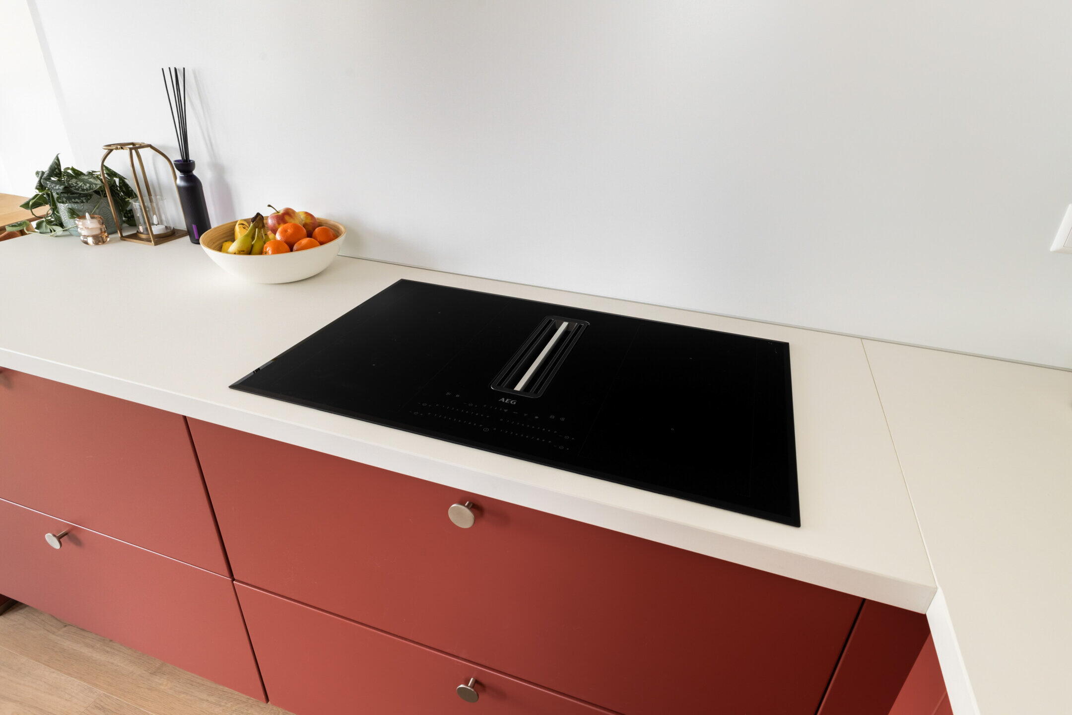 De ruime living van ca. 24 m² met strakke wanden en plafonds en een nette PVC vloer heeft dankzij de beglazing rondom veel lichtinval. Hier vind je ook de luxe open keuken, bevat een Quooker (met koud en bruiswater functie), grote koelkast met vriezer, kookplaat met werkbladafzuiging, vaatwasser, stoomoven.. Aansluitend is er een ruime berging met aansluiting voor wasmachine en droger.