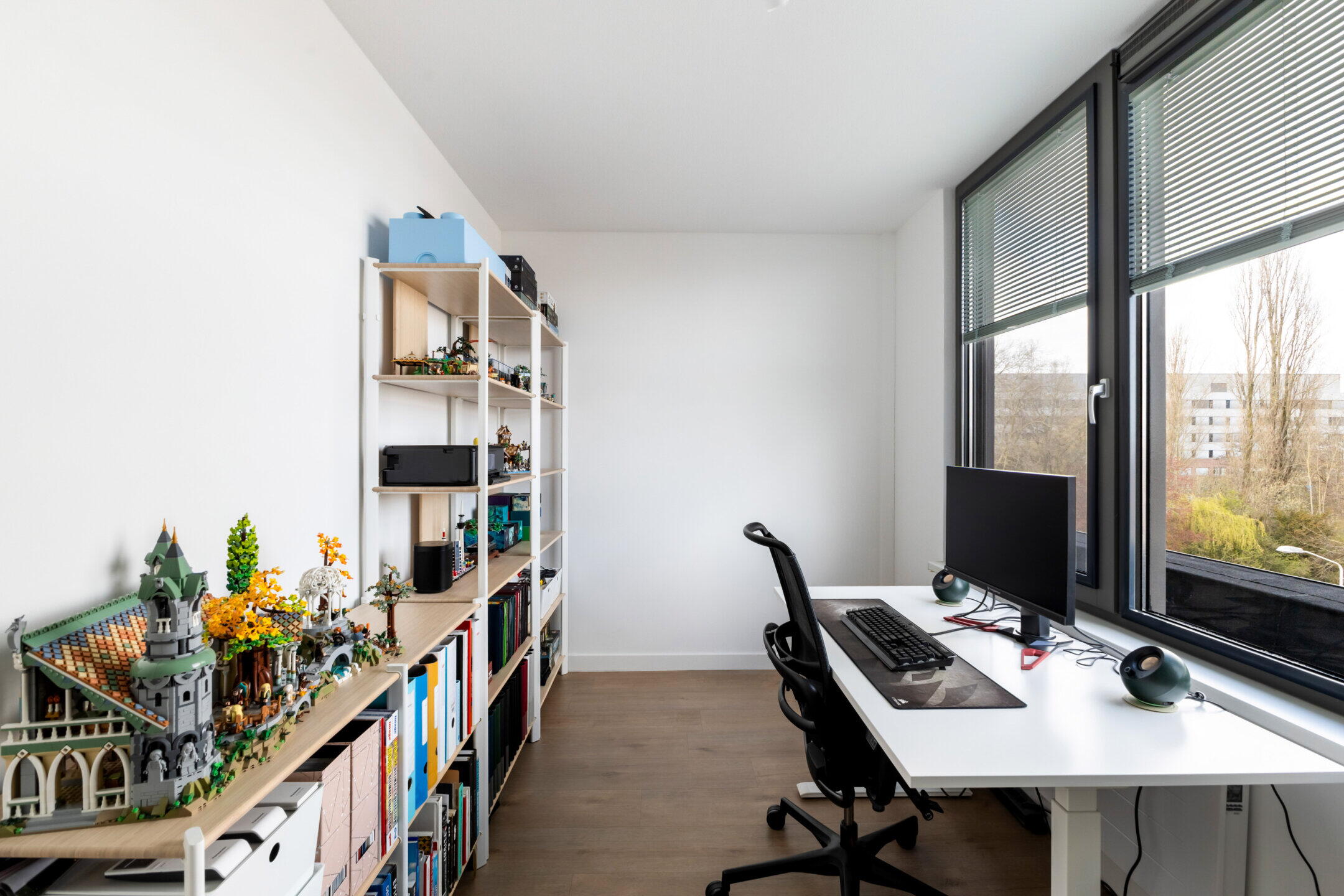 Slaapkamer (2) van ca. 6 m² is eveneens netjes afgewerkt en geschikt als slaap-, kast- of werkkamer.